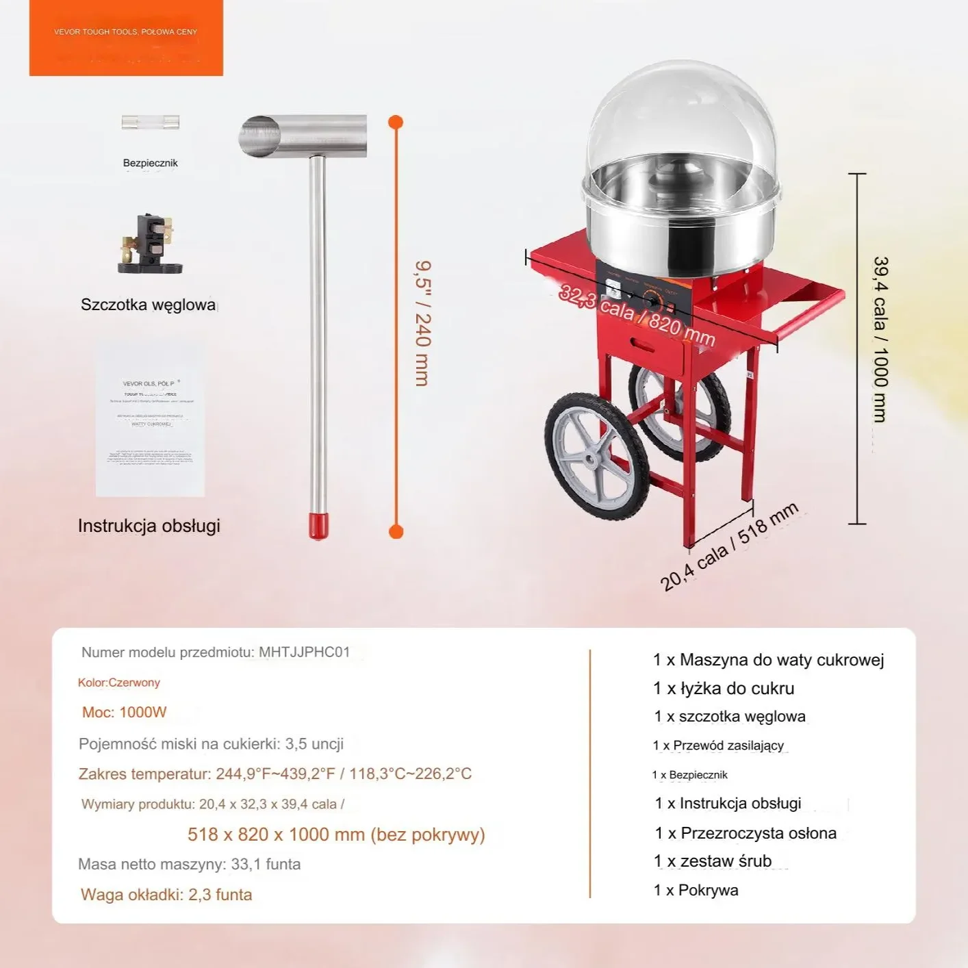Ta maszyna do waty cukrowej pozwala na użycie tradycyjnych cukrów do nitkowania, cukrów mlecznych, kostek owocowych lub dowolnych ulubionych twardych cukierków do przygotowania pysznych bawełnianych cukierków. Dzięki kompaktowym rozmiarom nadaje się do użytku na blacie i jest idealna na karnawały, festiwale, przyjęcia urodzinowe i imprezy sportowe.