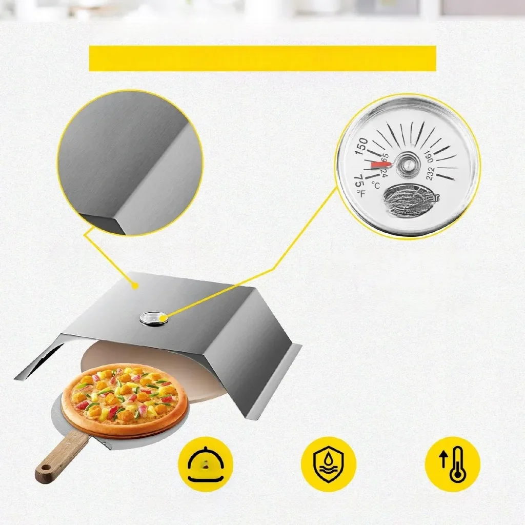Piec do pizzy 30,5 cm pelletowy, stalowy, termometr – ogrodowy przenośny