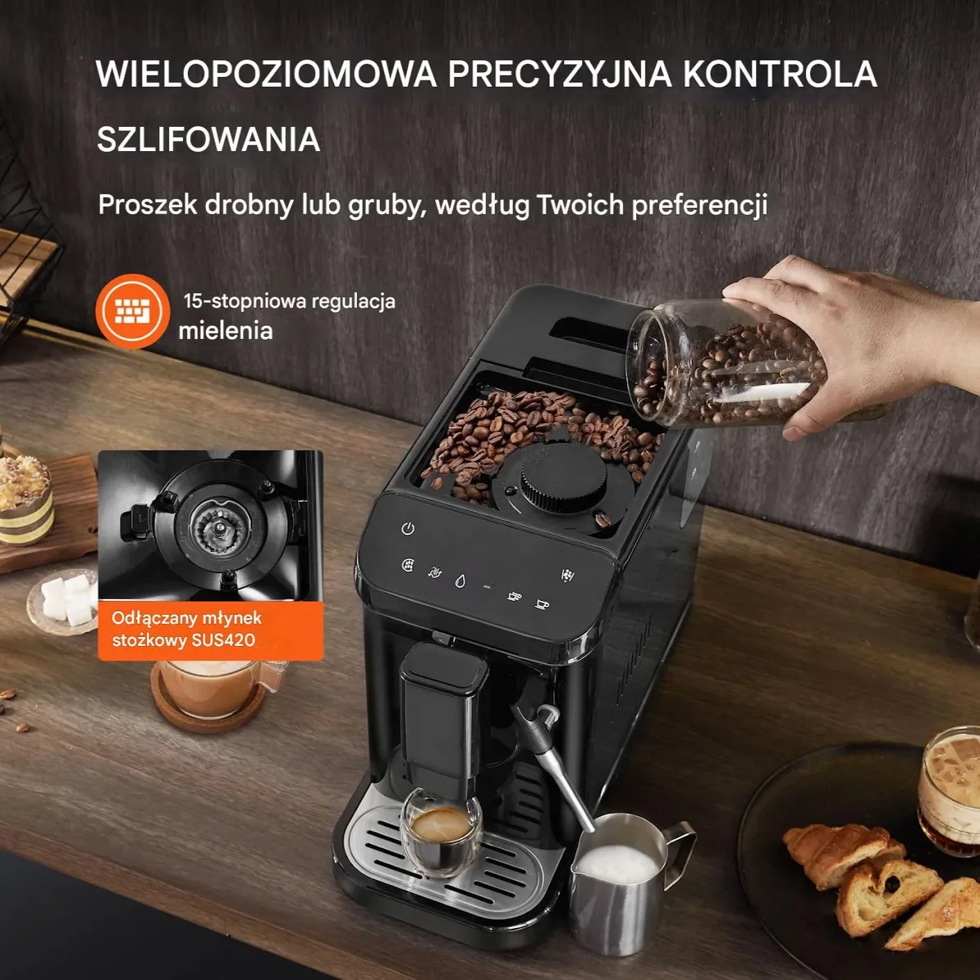 - ✅ Automatyczny ekspres do kawy z wbudowanym młynkiem