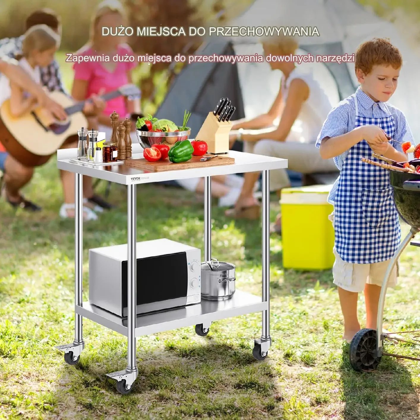 Poza przechowywaniem, nasz stół może być używany do siekania warzyw, wyrabiania ciasta, krojenia mięsa i innych zadań związanych z kuchnią. Jest idealny do użytku w barach, restauracjach, hotelach, bufetach, imprezach cateringowych, zajęciach szkolnych lub przerwach biurowych.