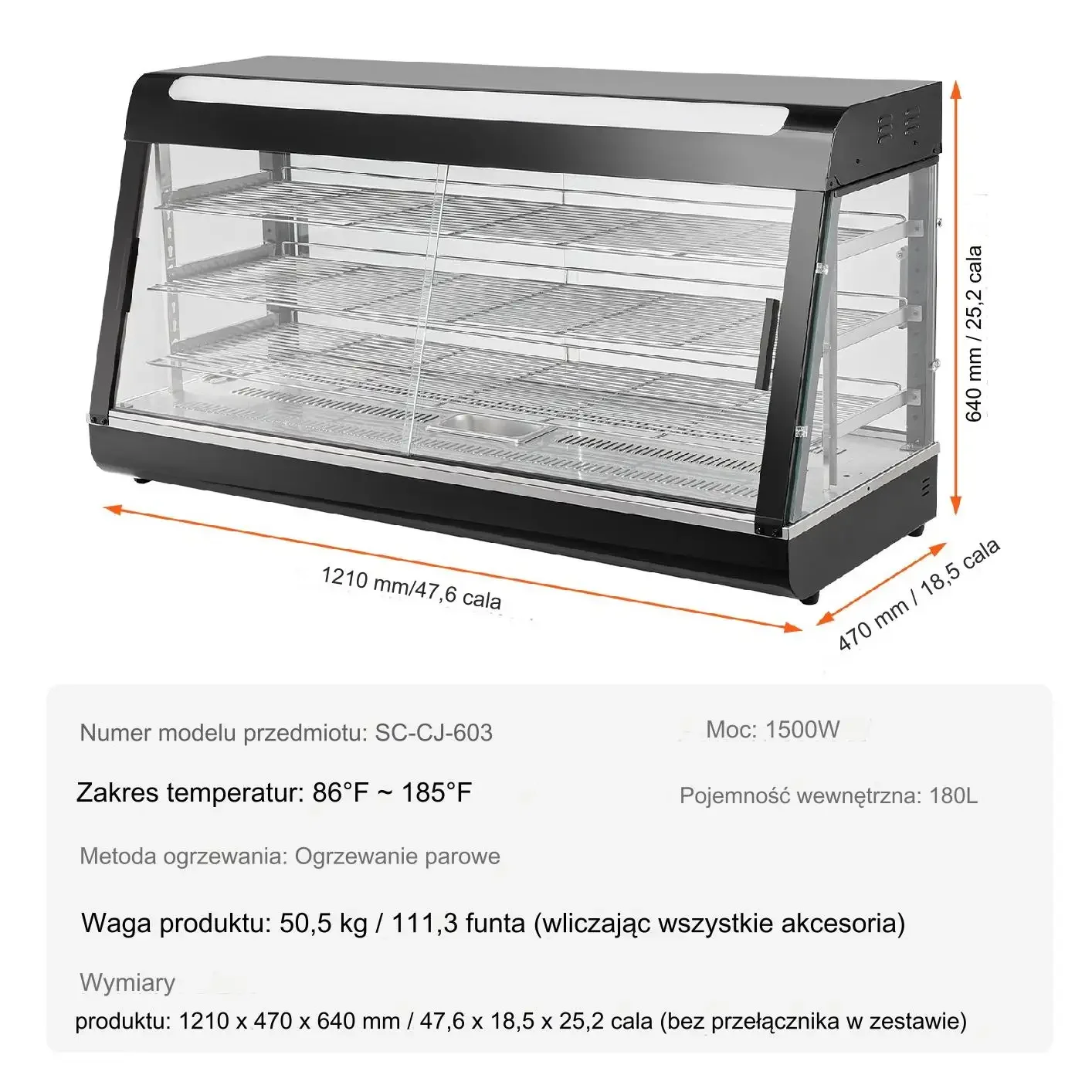 Podgrzewacz zapewnia profesjonalne rozwiązania w zakresie przechowywania i ekspozycji żywności, co przekłada się na zadowolenie klientów i optymalizację pracy. Inwestując w produkt, zyskujesz niezawodne urządzenie, które sprosta wymaganiom każdego lokalu gastronomicznego. Zapewnij sobie i swoim klientom komfort i jakość. Nie czekaj, aby podnieść standardy w swojej kuchni. Wybierz profesjonalizm i wydajność już dziś!