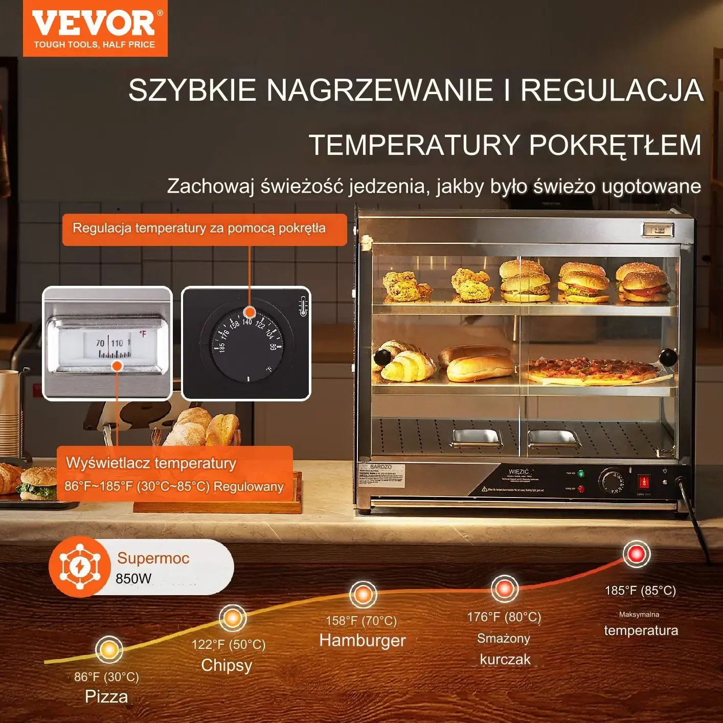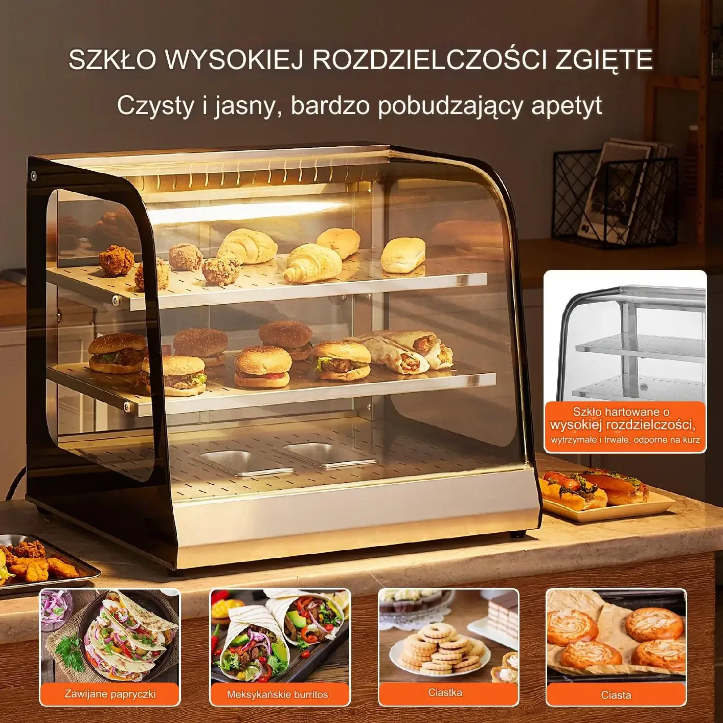 - ⭐ Idealny do utrzymywania ciepła i eksponowania pizzy, burgerów, frytek i innych dań typu fast food w restauracjach i barach.