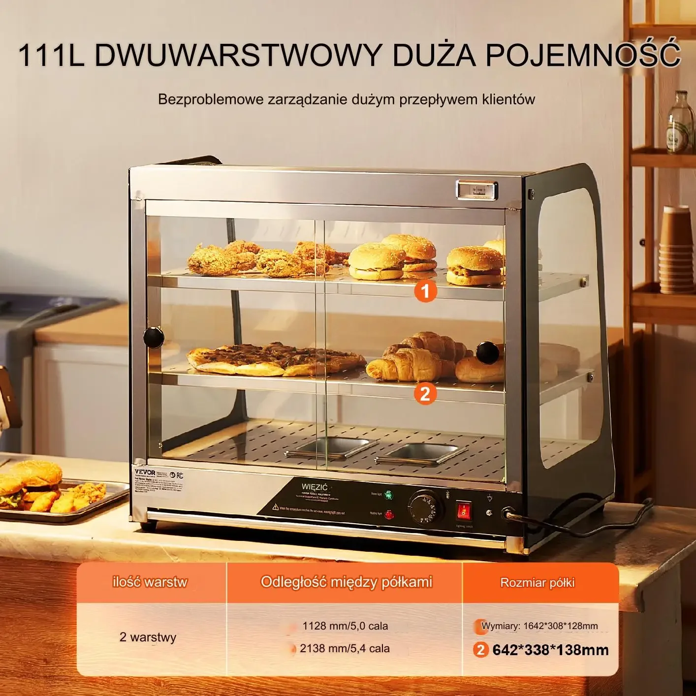 Profesjonalny 2-poziomowy podgrzewacz i witryna do żywności 111 L