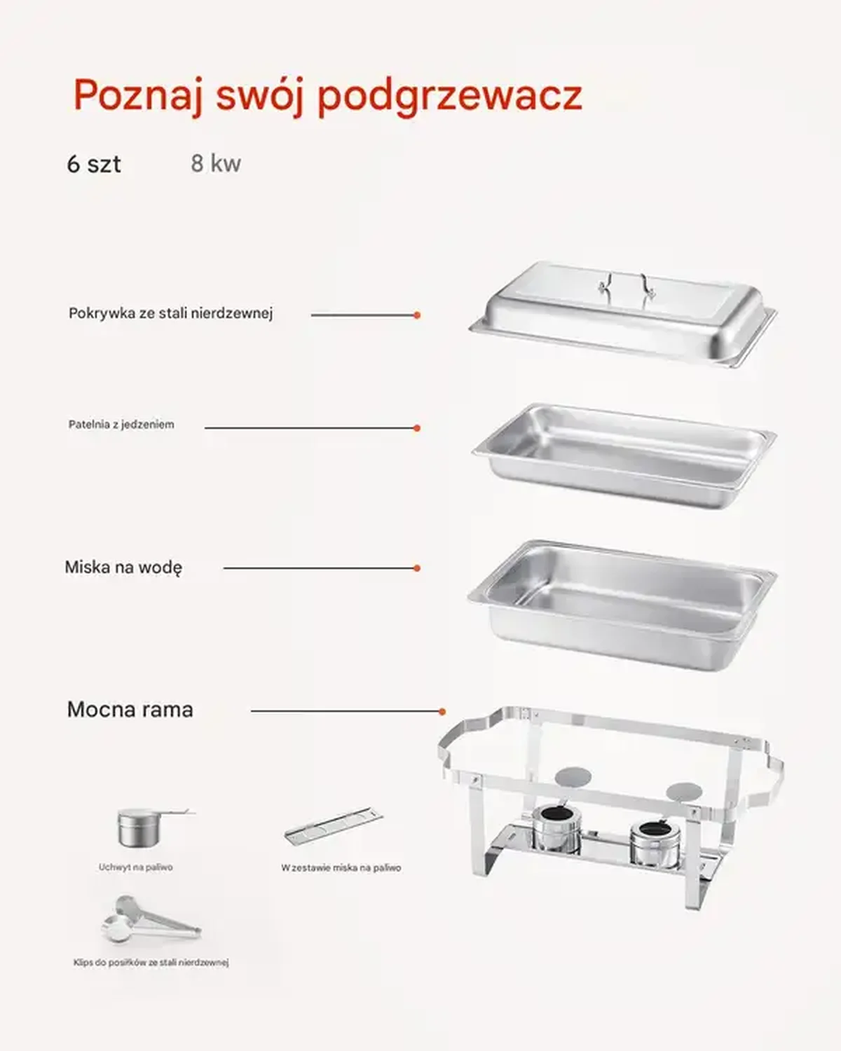 Podgrzewacz do Potraw – Elegancki Chafing Dish Buffet w Srebrnym Wykończeniu