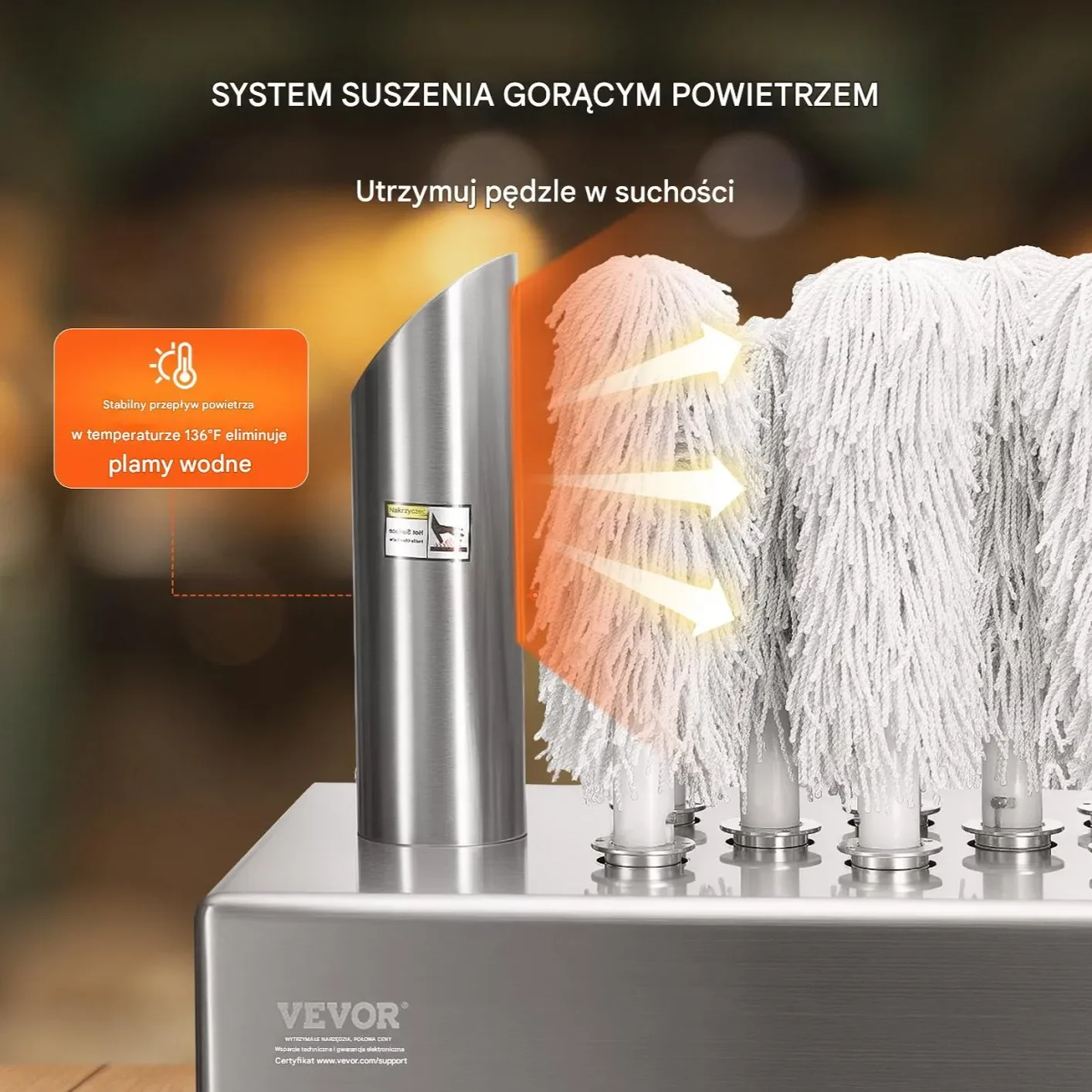 Delikatne, ale skuteczne szczotki z mikrofibry sprawiają, że urządzenie usuwa ślady wody i odciski palców, nie pozostawiając smug. Solidna konstrukcja i łatwa obsługa sprawiają, że jest to niezastąpione narzędzie w każdym profesjonalnym lokalu gastronomicznym.