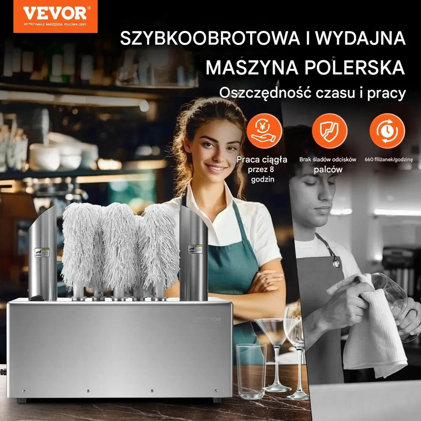 ✔ Szybkie i skuteczne polerowanie – do 660 kieliszków na godzinę.