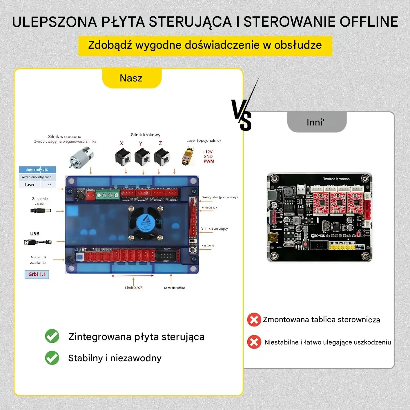 - ✅ Sterowanie GRBL + tryb offline: praca bez komputera lub bezpośrednio z PC