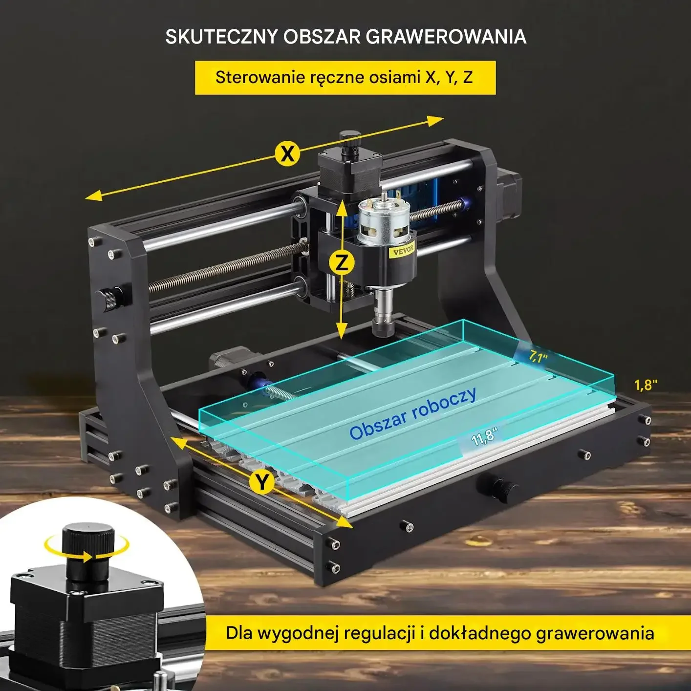 - ✅ Łatwa regulacja ręczna osi: szybkie ustawienie punktu startowego pracy