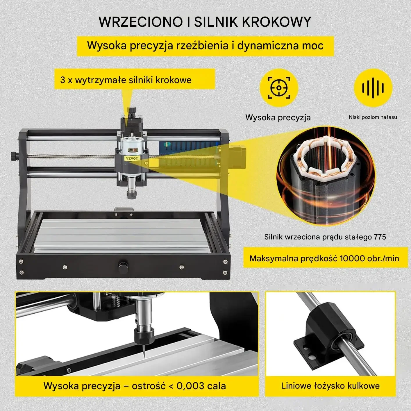- ✅ Silnik wrzeciona 10 000 obr./min: szybkie i czyste cięcie oraz grawerowanie