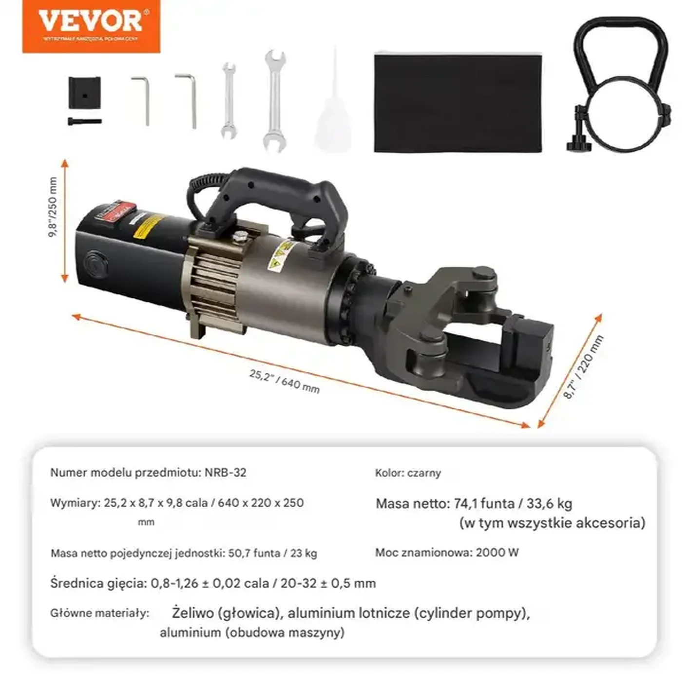 Elektryczna hydrauliczna giętarka do rur 2000W 20-32mm