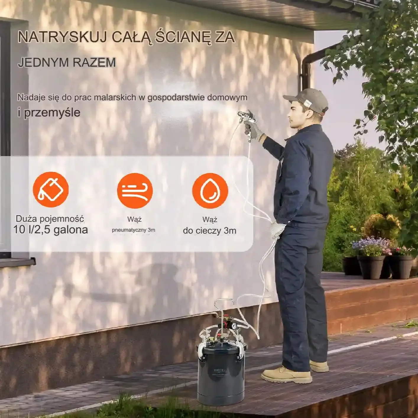 - ✅ Duża pojemność 10 litrów: Idealny do długotrwałego malowania bez konieczności częstego uzupełniania.
