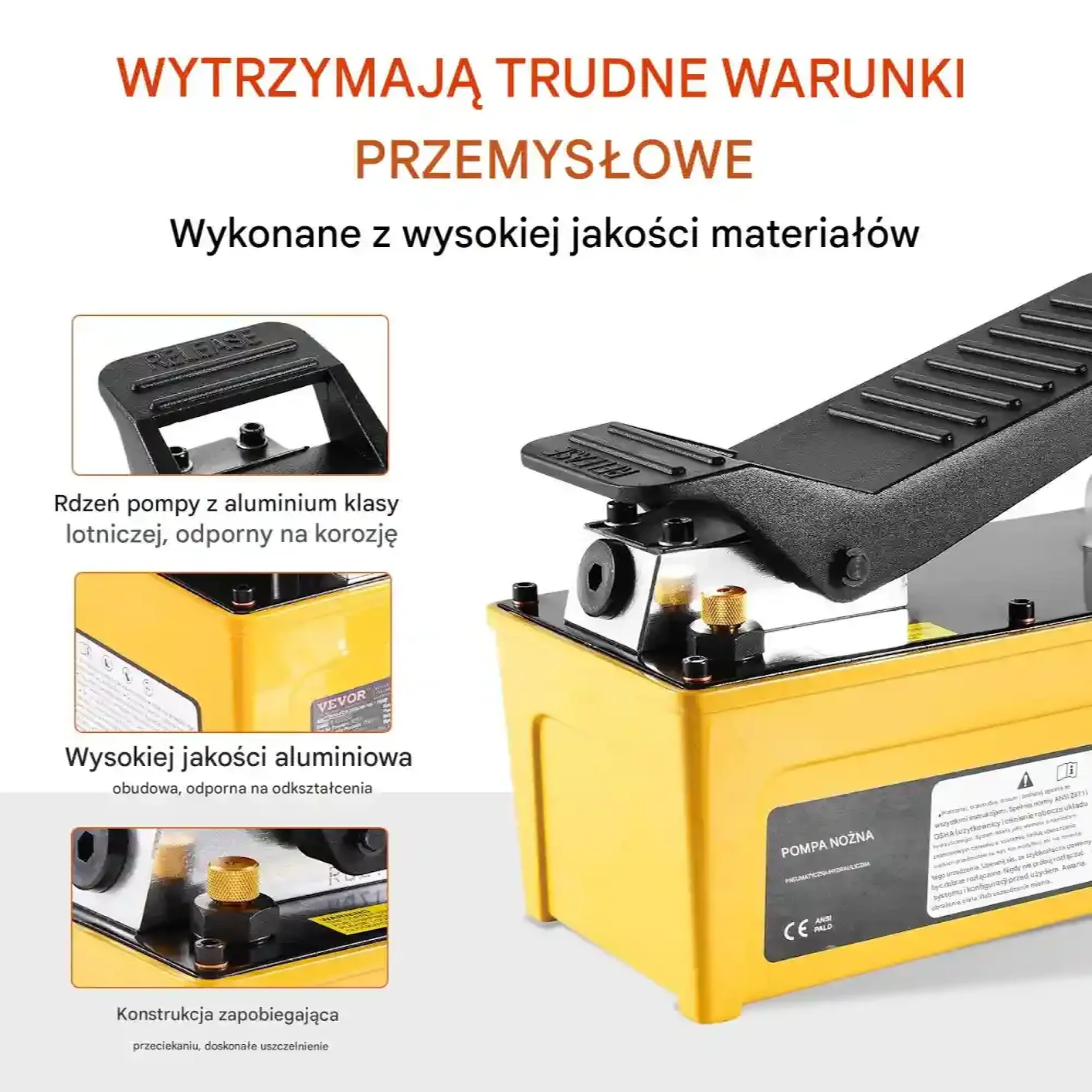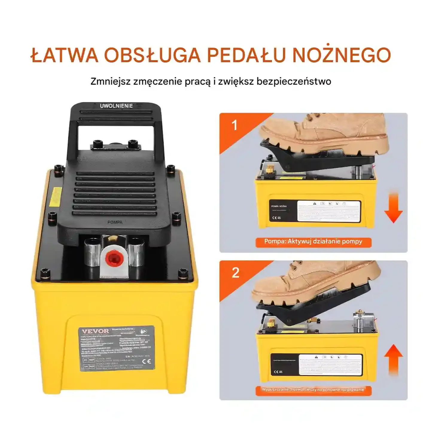 • Obsługa nożna: Prosta i efektywna praca – naciskając pedał buduje się ciśnienie, zwolnienie szybko je uwalnia