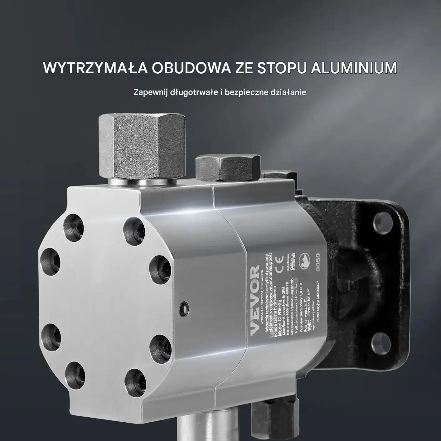 - ✅ Niezrównana wydajność: Maksymalna prędkość 3600 obr./min, ciśnienie robocze 276 bar (4000 PSI) i przepływ 60,5 litra/min (16 GPM).