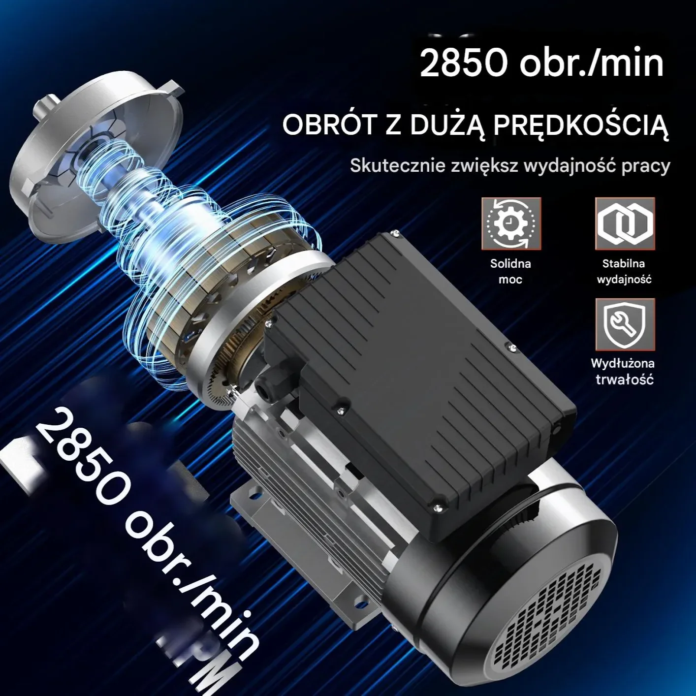 - ✅ Wysoka prędkość: 2850 obr/min zapewniająca efektywną pracę