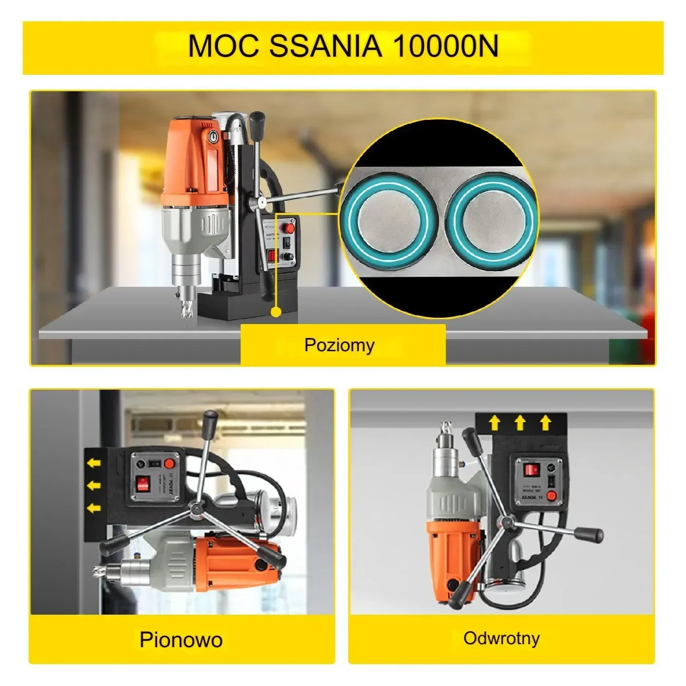 - ✅ Siła przyciągania magnetycznego 10 000 N – stabilność i bezpieczeństwo pracy.