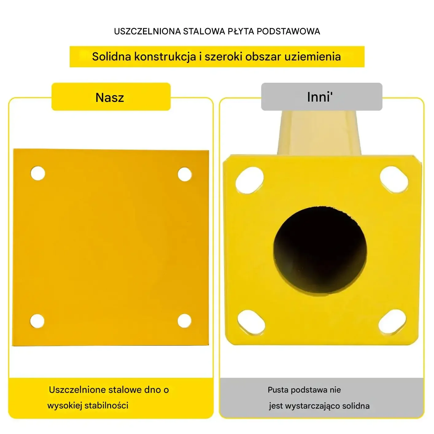 • Stabilna płyta montażowa 20 x 20 cm: Grubość 6 mm, całkowicie zespawana z rurą dla maksymalnej sztywności
