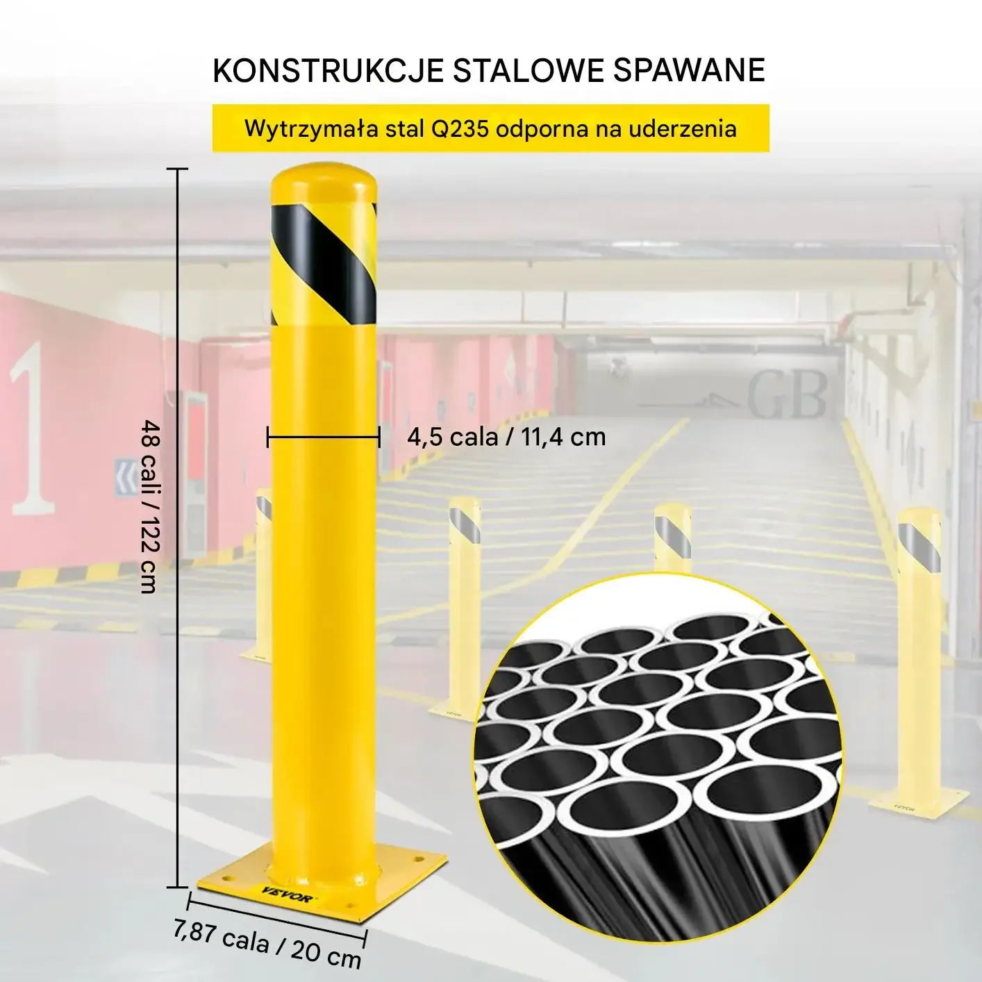 Słupek Ochronny Stalowy 122 cm – Bariera Parkingowa 11,4 cm Q235 Żółto-Czarna 2 szt.