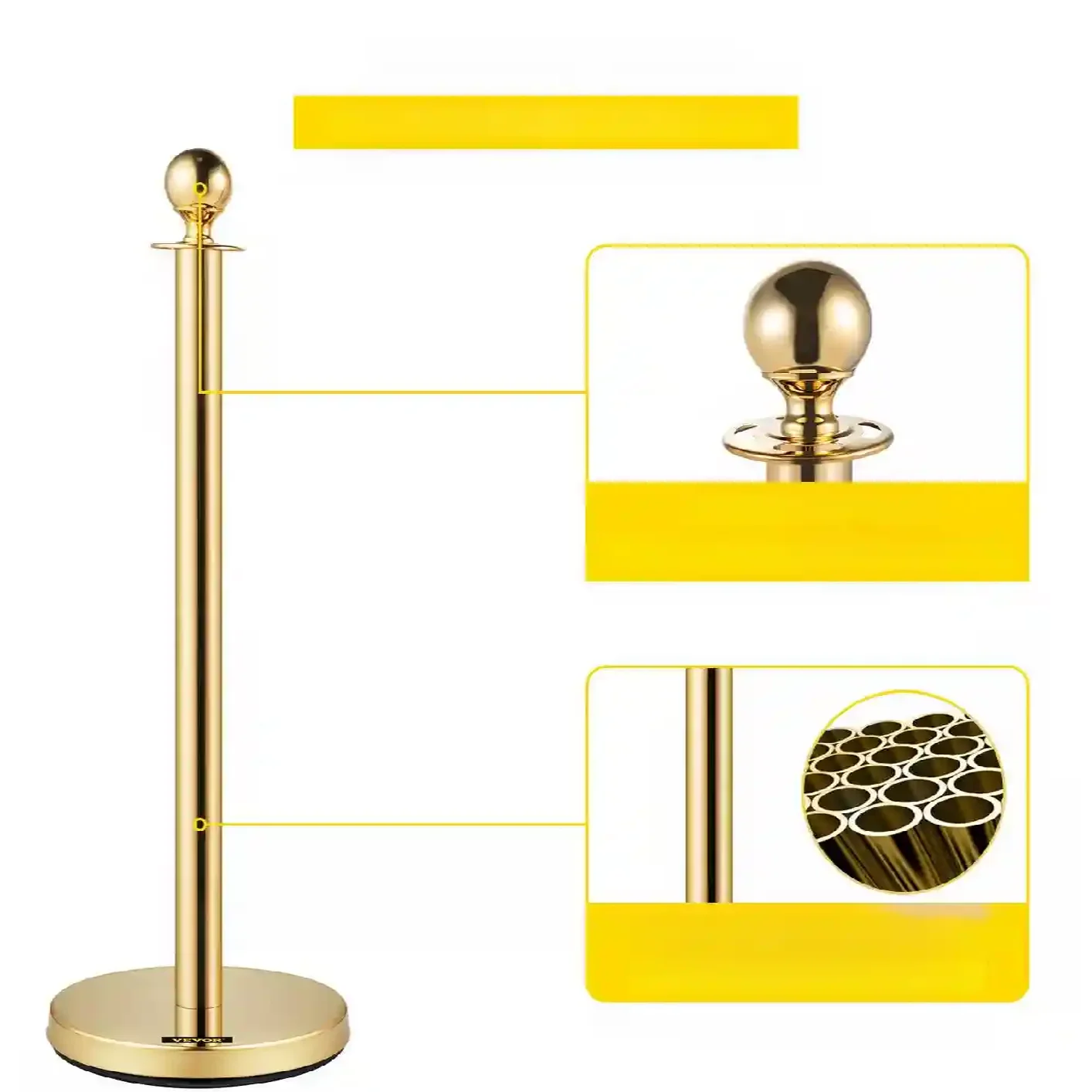 Ten zestaw luksusowych słupków to idealny wybór, aby podnieść rangę i elegancję każdej przestrzeni, jednocześnie skutecznie kierując ruchem. Ich błyszczące, złote wykończenie oraz klasyczne, aksamitne sznury tworzą wyrafinowaną barierę, która doskonale komponuje się z wnętrzami hoteli, restauracji, teatrów, muzeów, ekskluzywnych sklepów czy galerii sztuki. Wykonane z solidnej stali nierdzewnej, gwarantują wyjątkową trwałość i stabilność przez lata, a waży podstawa z gumową osłoną skutecznie zapobiega przewróceniu i chroni podłogi.