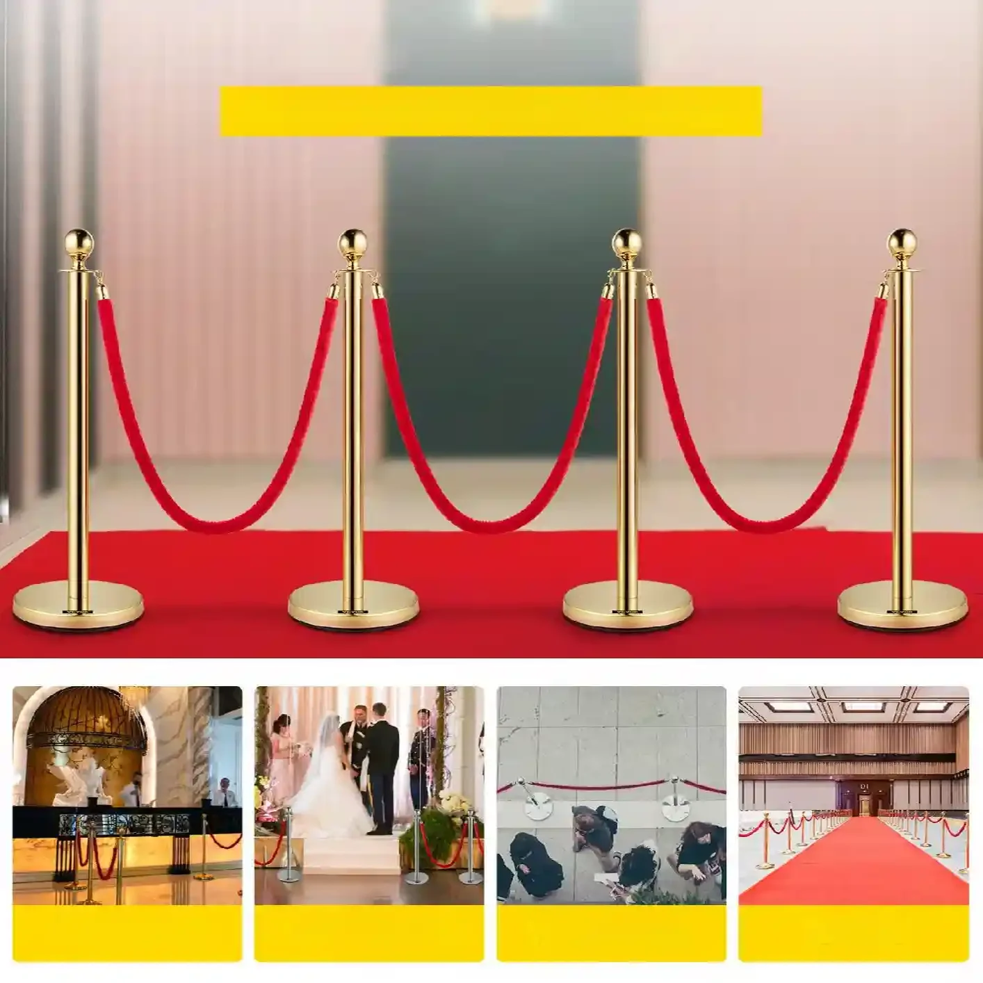 Podkreśl prestiż: złote słupki z aksamitnymi sznurami (4 sztuk)