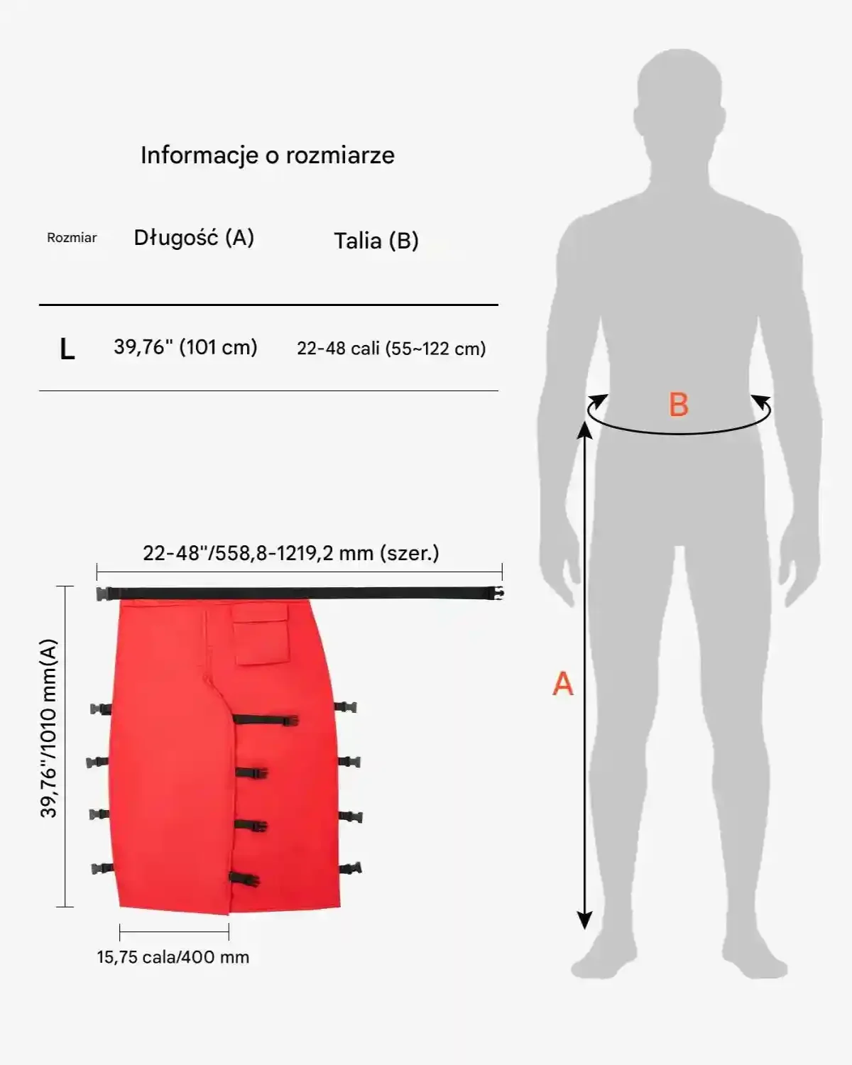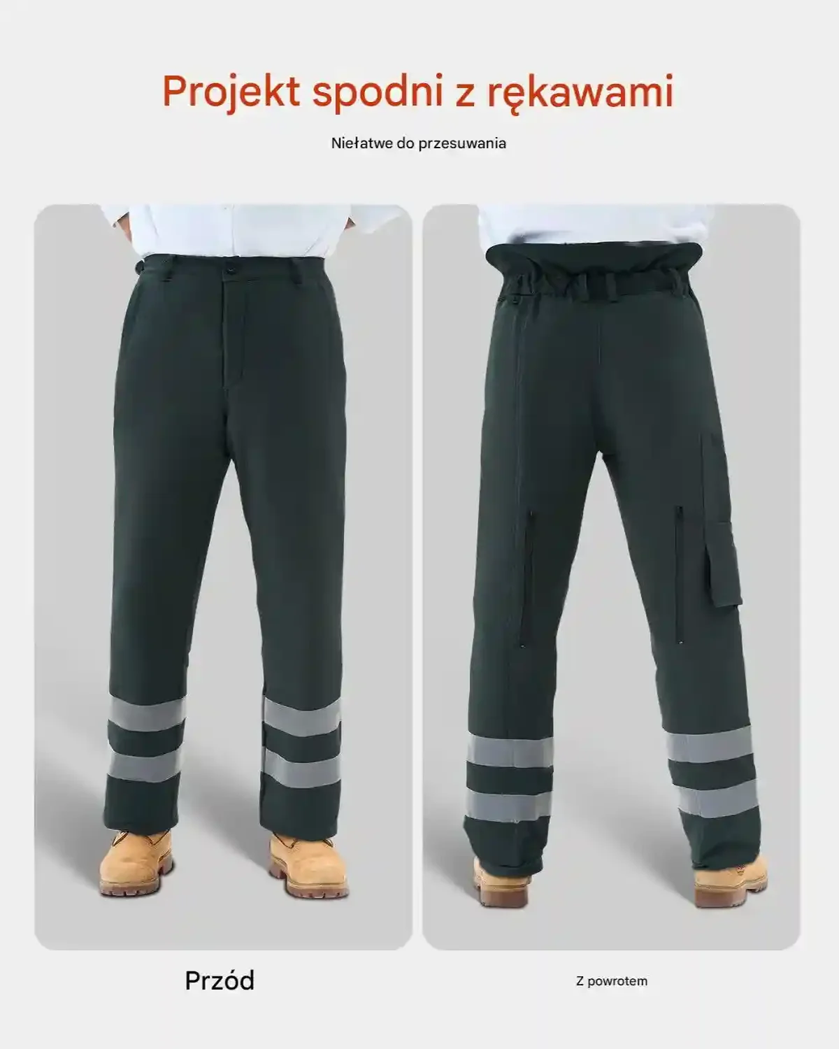 • Długość nogawki: 104 cm, szerokość nogawki 24,5 cm, idealna ochrona od pasa do stopy