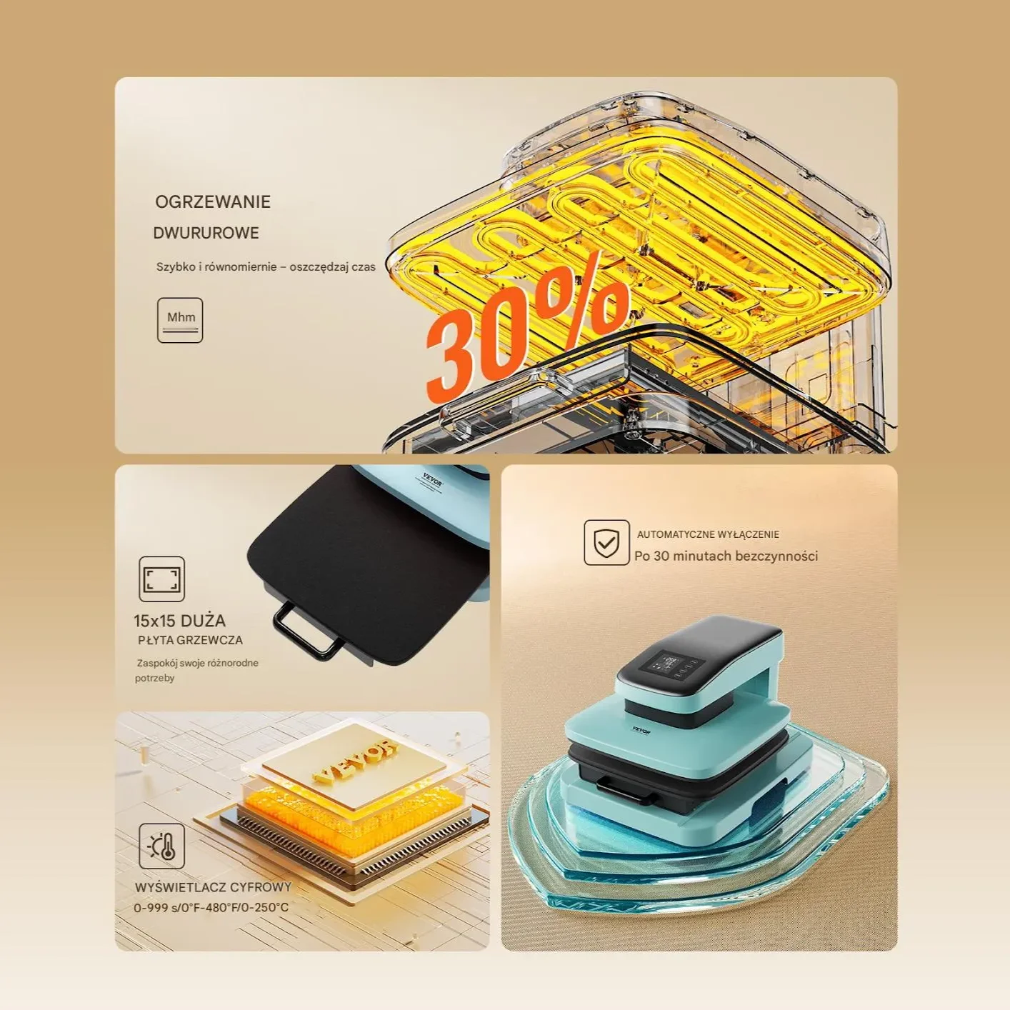 Wejdź na wyższy poziom personalizacji i zautomatyzuj swoją kreatywność! Ta rewolucyjna, w pełni automatyczna prasa termotransferowa to przełom dla hobbystów i profesjonalistów. Zapomnij o ręcznym dociskaniu i pilnowaniu czasu – teraz wystarczy jedno naciśnięcie przycisku. W zestawie z prasą do kubków, ten pakiet to wszystko, czego potrzebujesz, by tworzyć niesamowite projekty na odzieży, kubkach i wielu innych przedmiotach z niezrównaną łatwością i precyzją.