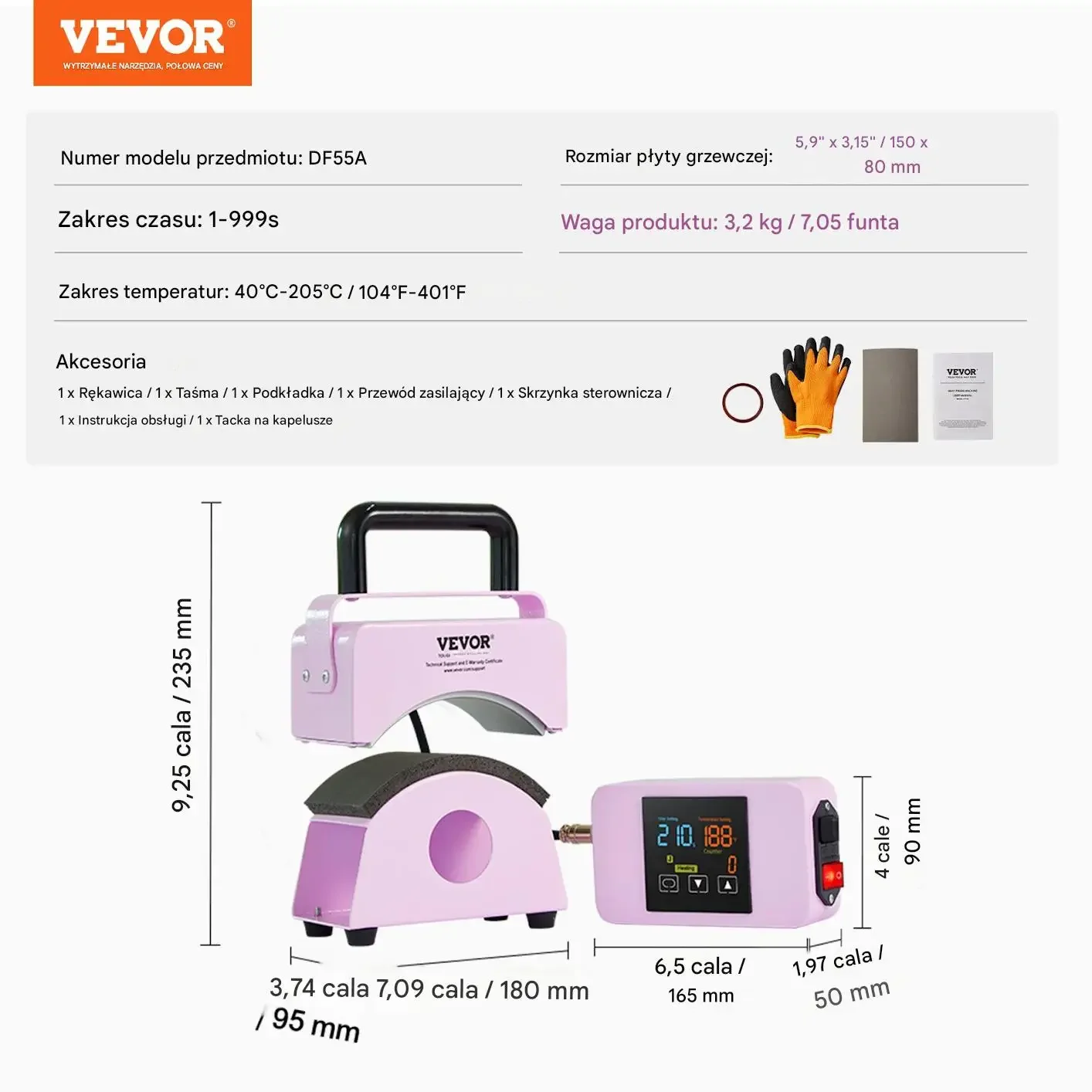 - Prasa do czapek / czapek: 15,2 x 7,6 cm (zakrzywiona)