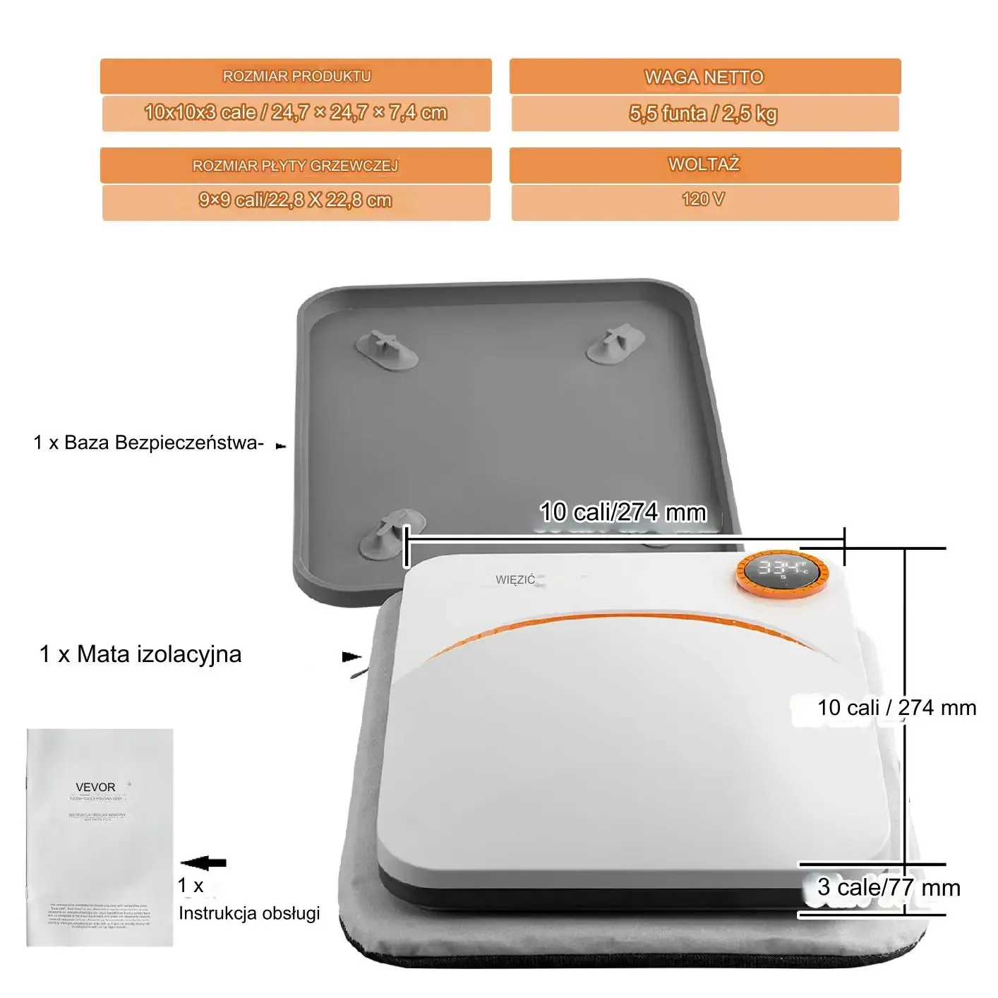 - ✅ Precyzyjna kontrola temperatury: Cyfrowy regulator temperatury w zakresie od 0 do 250°C (0-482°F) gwarantuje dokładne ustawienie ciepła.