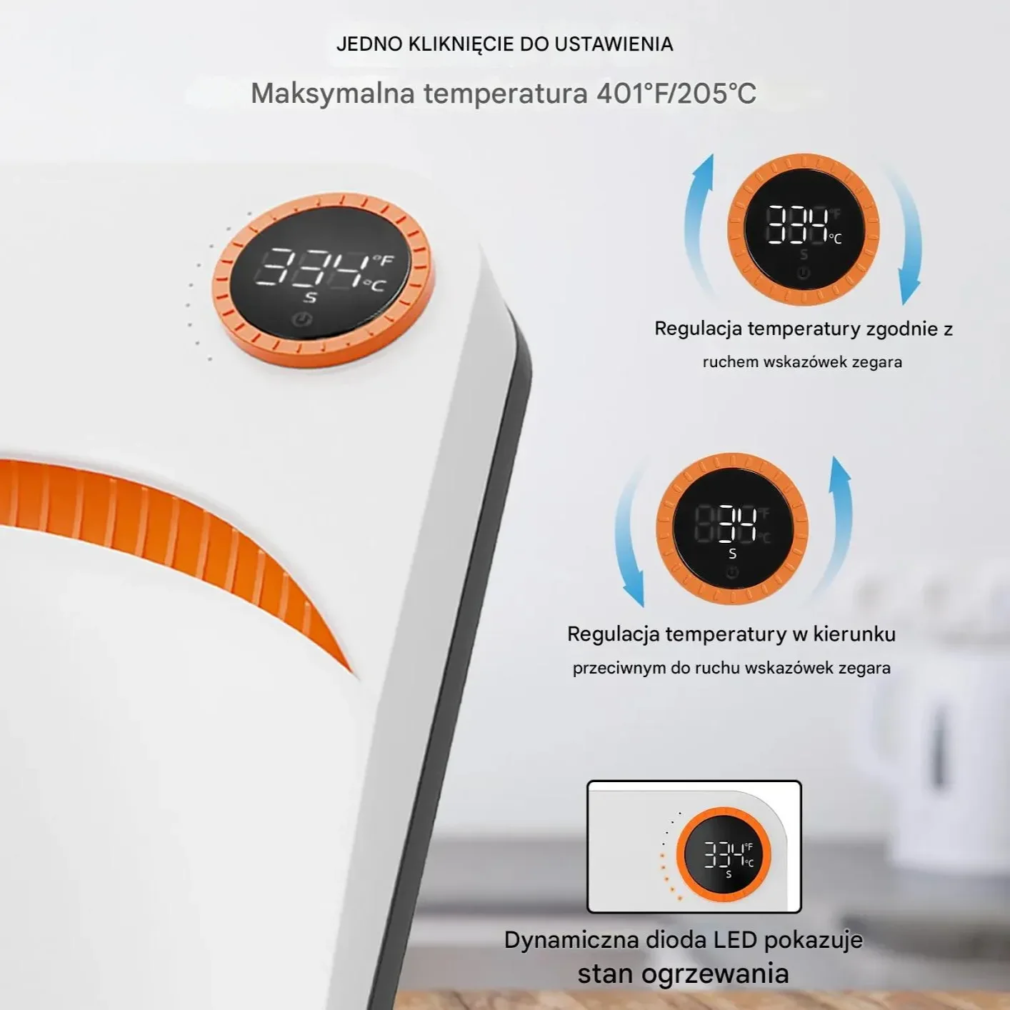 - ✅ Intuicyjne sterowanie: Pokrętła do regulacji temperatury i czasu, z 9 wskaźnikami LED i dużym cyfrowym wyświetlaczem pokazującym status na pierwszy rzut oka