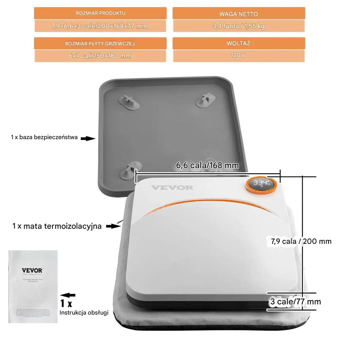- Rozmiar płyty grzewczej: 150 x 180 mm