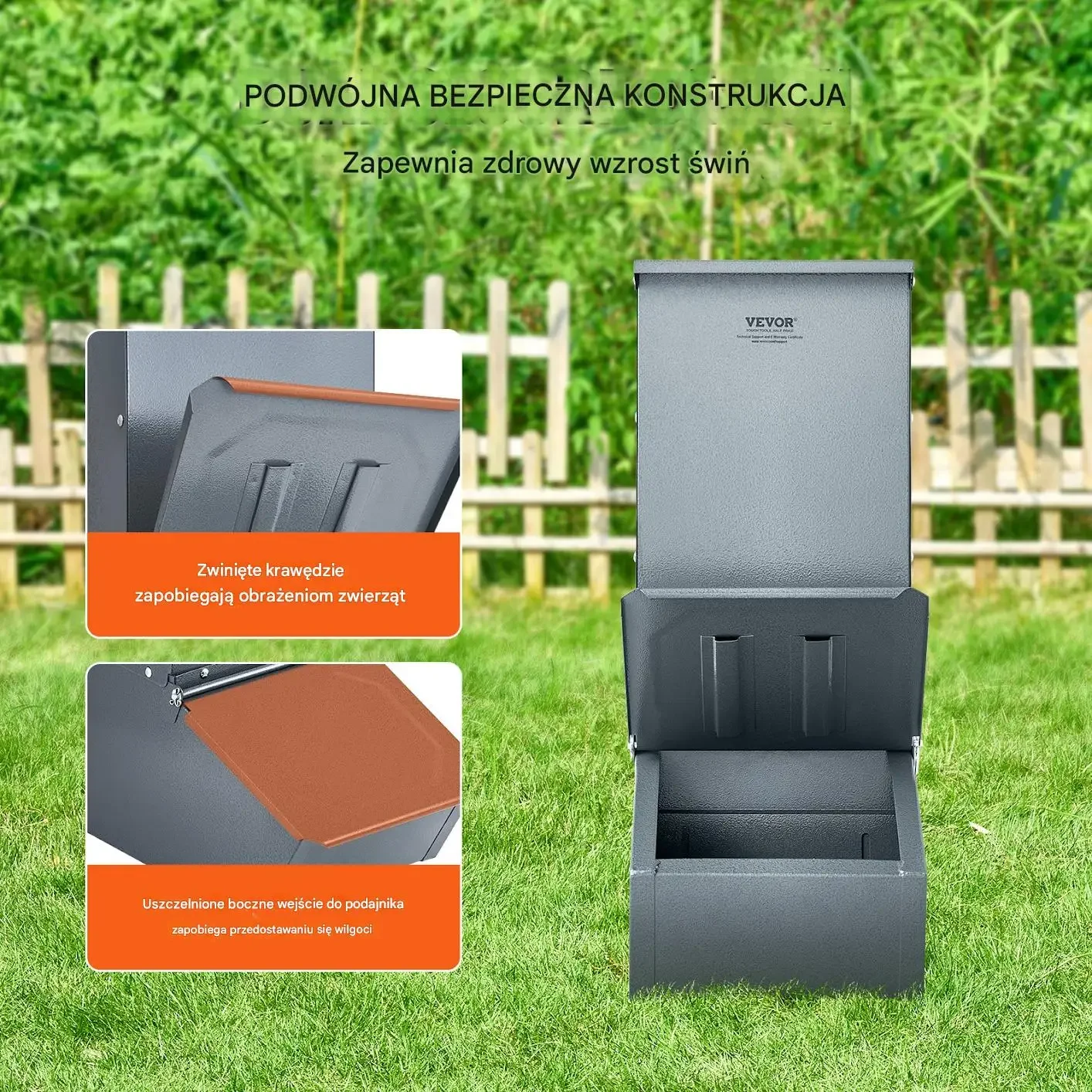 Metalowy Karmnik dla Świń – Pojemność 77 Litrów, Podwójne Drzwi, Karmienie do 5 Świń