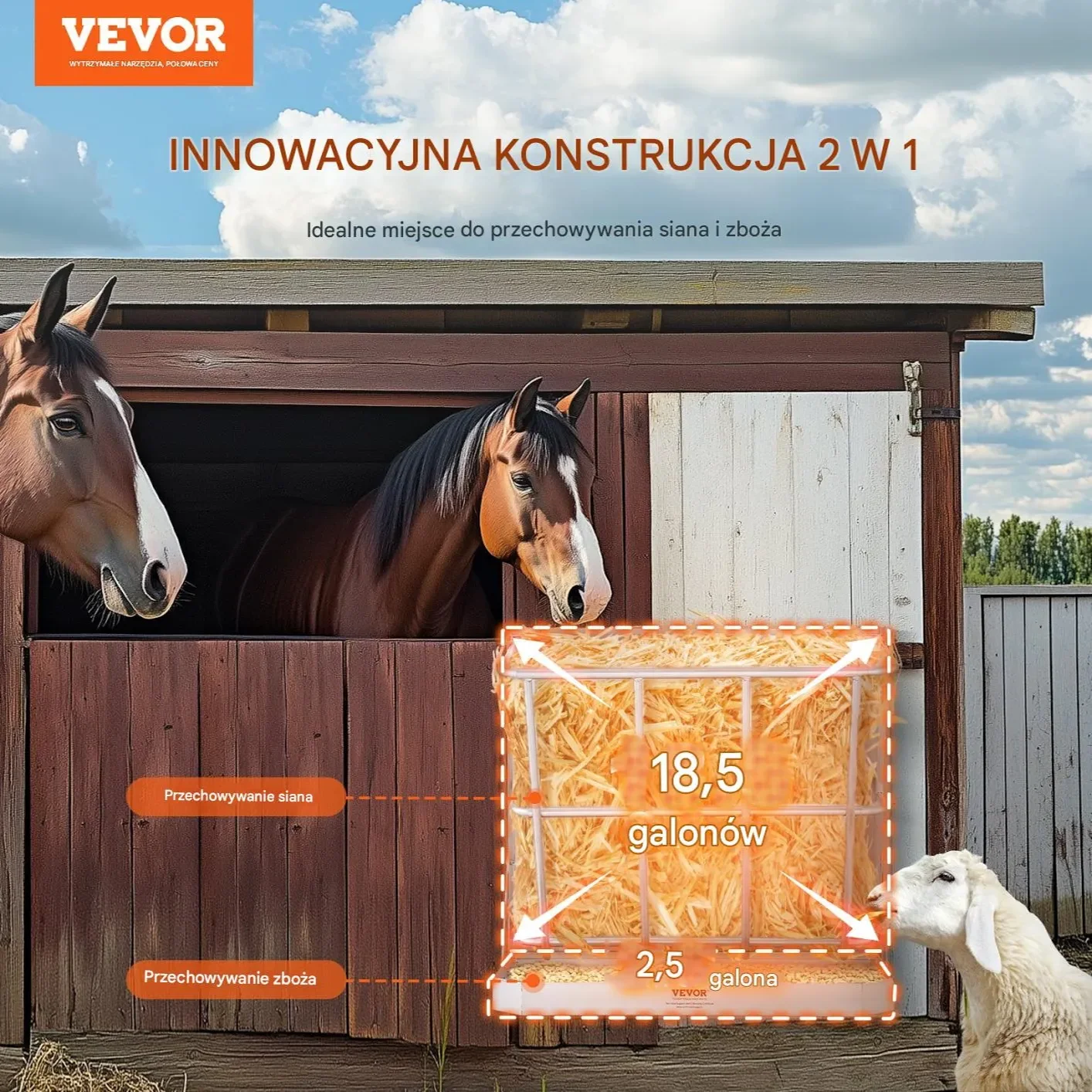 ✅ Funkcja 2 w 1 – karmnik na siano i paszę ziarnistą