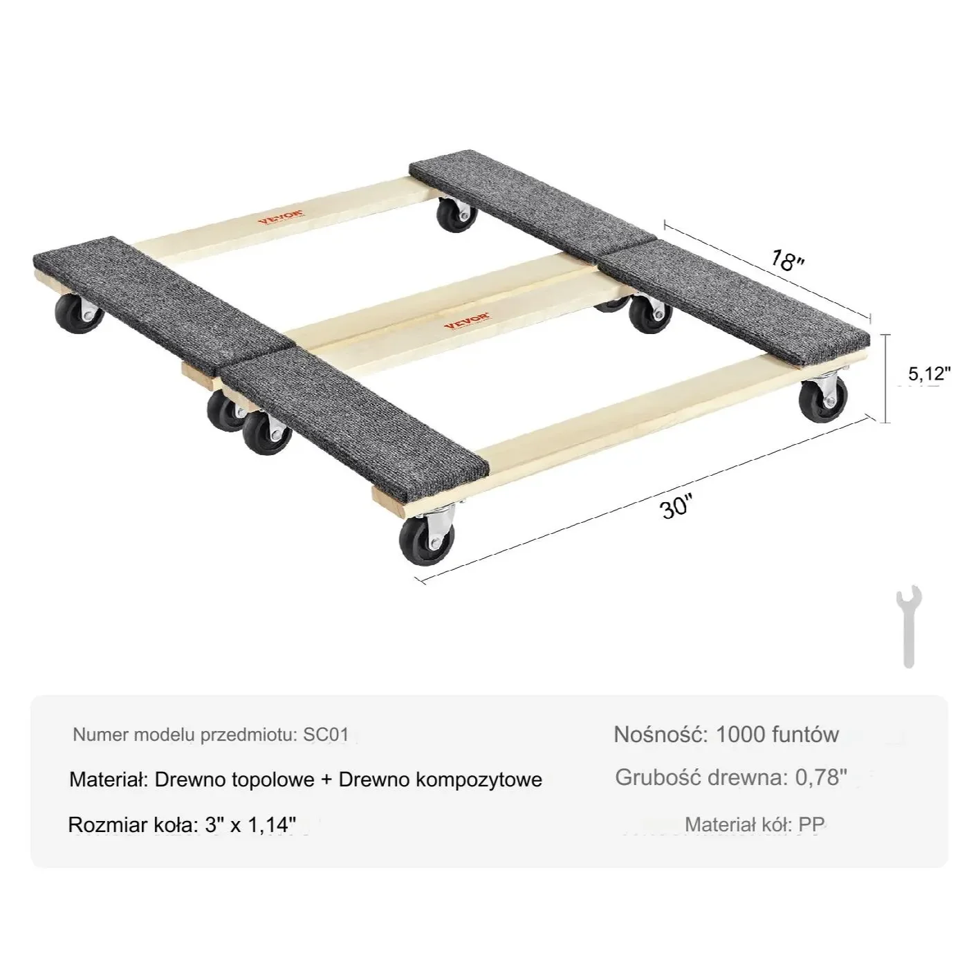 Numer modelu produktu to GMZJ01. Masa netto wózka wynosi 15,6 kg. Wymiary produktu to 108,2 cm długości, 88,7 cm szerokości i 58 cm wysokości. Wózek jest przeznaczony do transportu 4 drzwi.