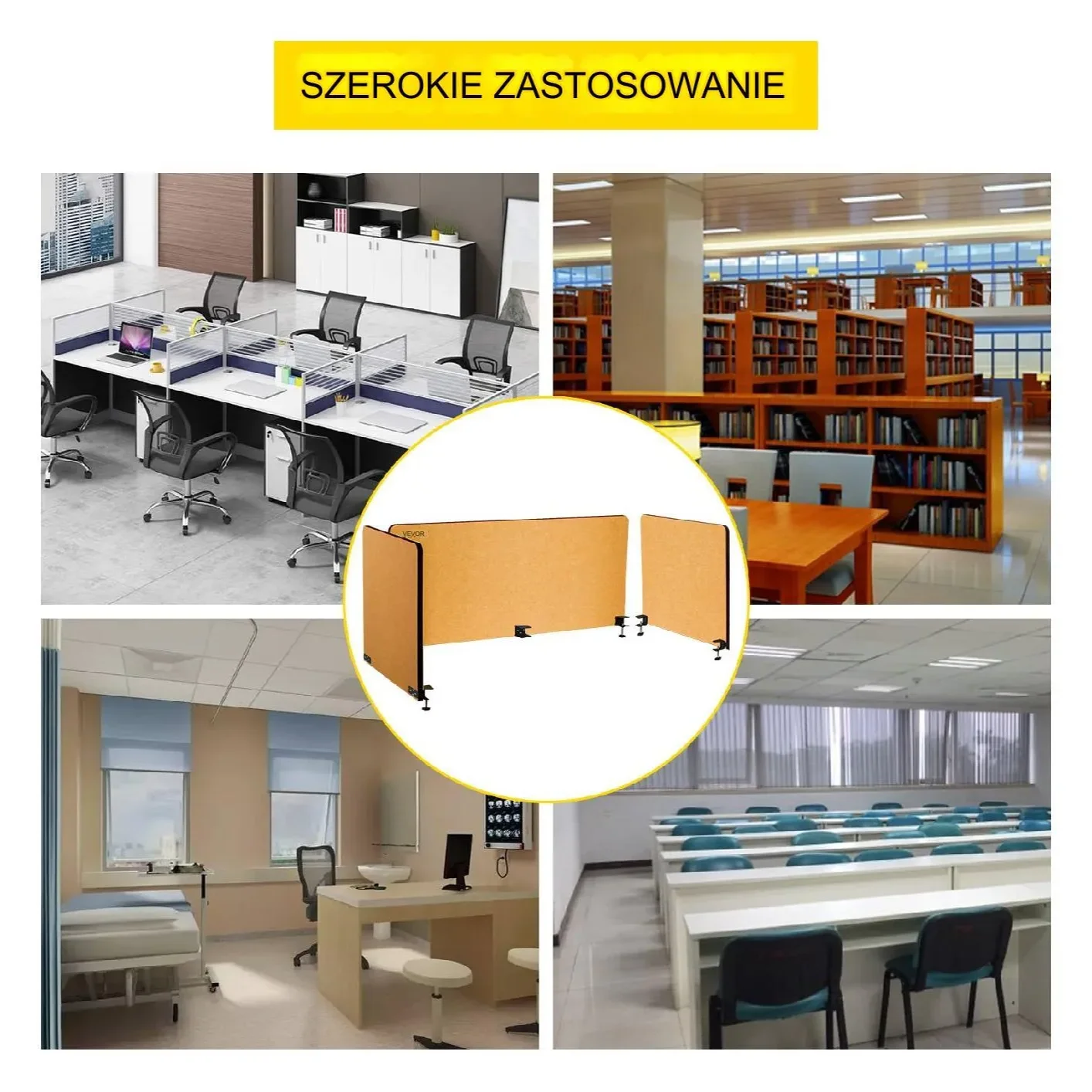 Akustyczny rozdzielacz biurka jest łatwy w montażu. Zaciski można bezpiecznie przymocować do większości biurek o grubości od 10 do 35mm, bez konieczności wiercenia otworów. Solidne zaciski zapewniają stabilność i wytrzymałość panelu. Idealnie nadaje się do biur, bibliotek, sal lekcyjnych i innych miejsc pracy.