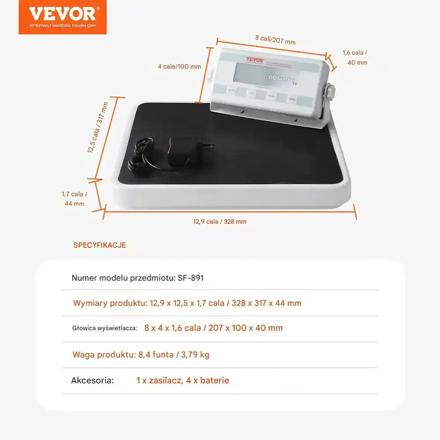 Wysoka dokładność do 0,1 lb. Stabilna podstawa zapewnia dokładniejszy pomiar. Maksymalna waga: 440 funtów (198,2 kg).