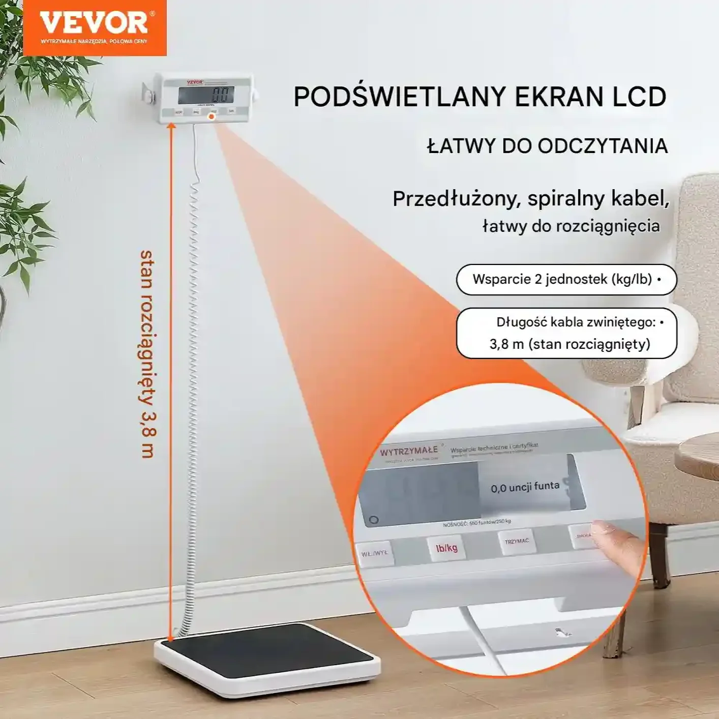 - ✅ Duży zakres ważenia: Maksymalna nośność 550 funtów ≈ 249 kg – idealna dla użytkowników domowych i profesjonalnych