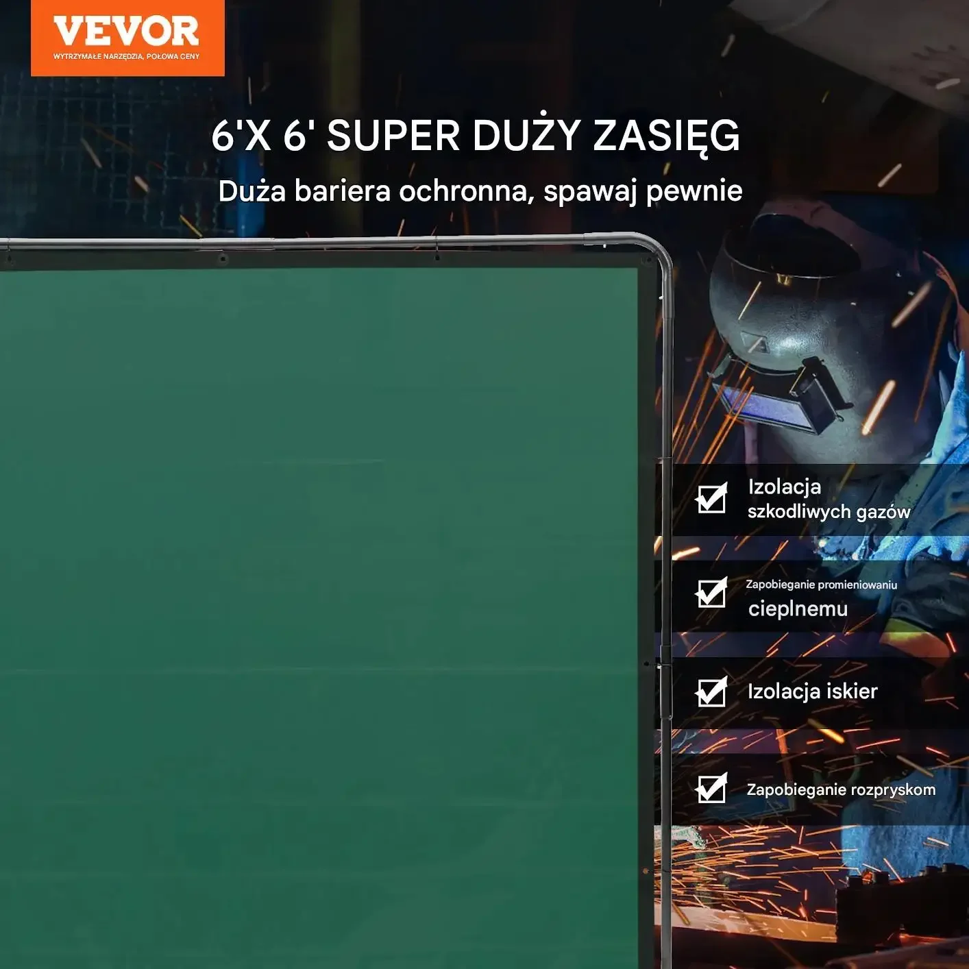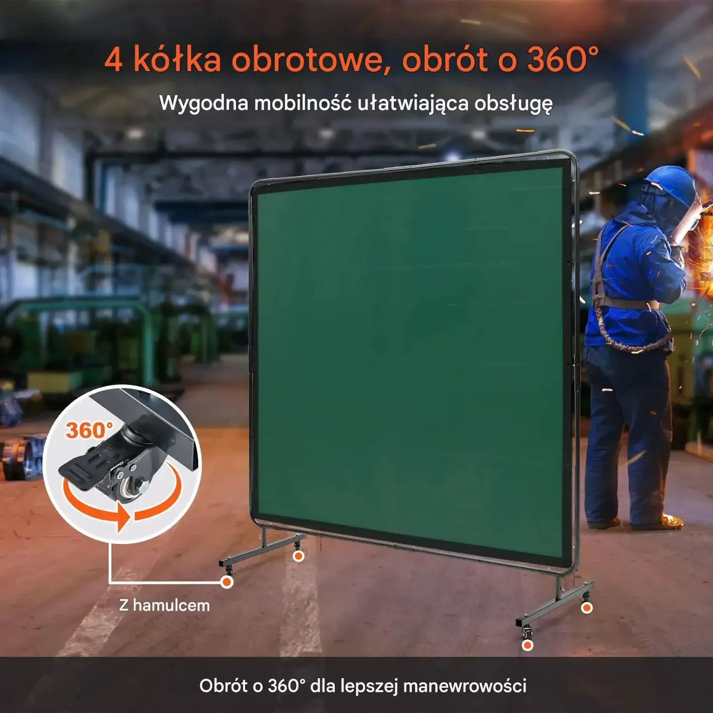 - ✅ Duża powierzchnia ochronna 180 × 180 cm: skuteczna izolacja stanowiska spawalniczego