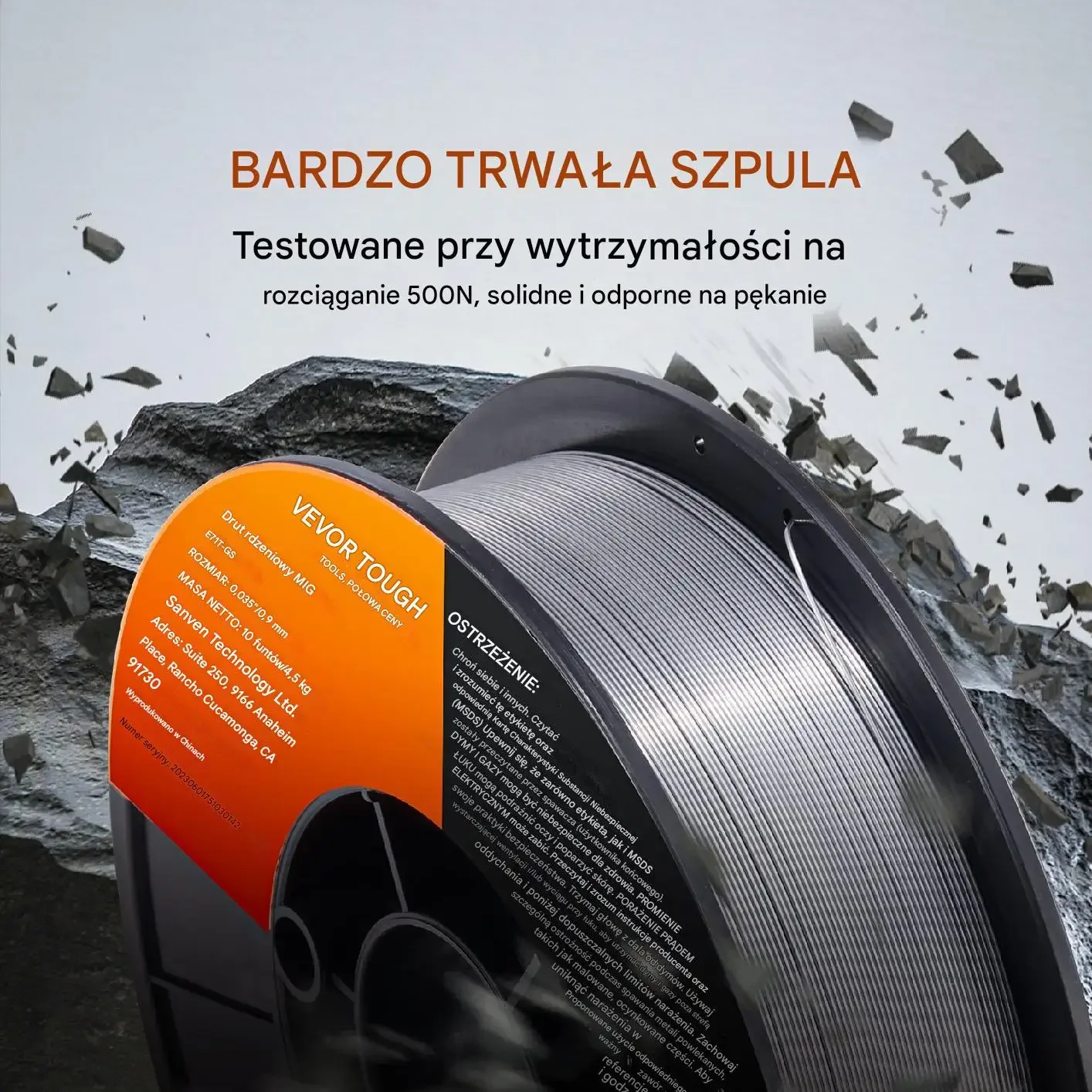 Solidna szpula zapewnia wygodne przechowywanie i łatwy transport, minimalizując ryzyko zerwania drutu i strat materiału. Poprawia to wydajność pracy i stabilizuje jakość spawania, co ma kluczowe znaczenie dla płynnych operacji spawalniczych i uzyskania doskonałych połączeń.