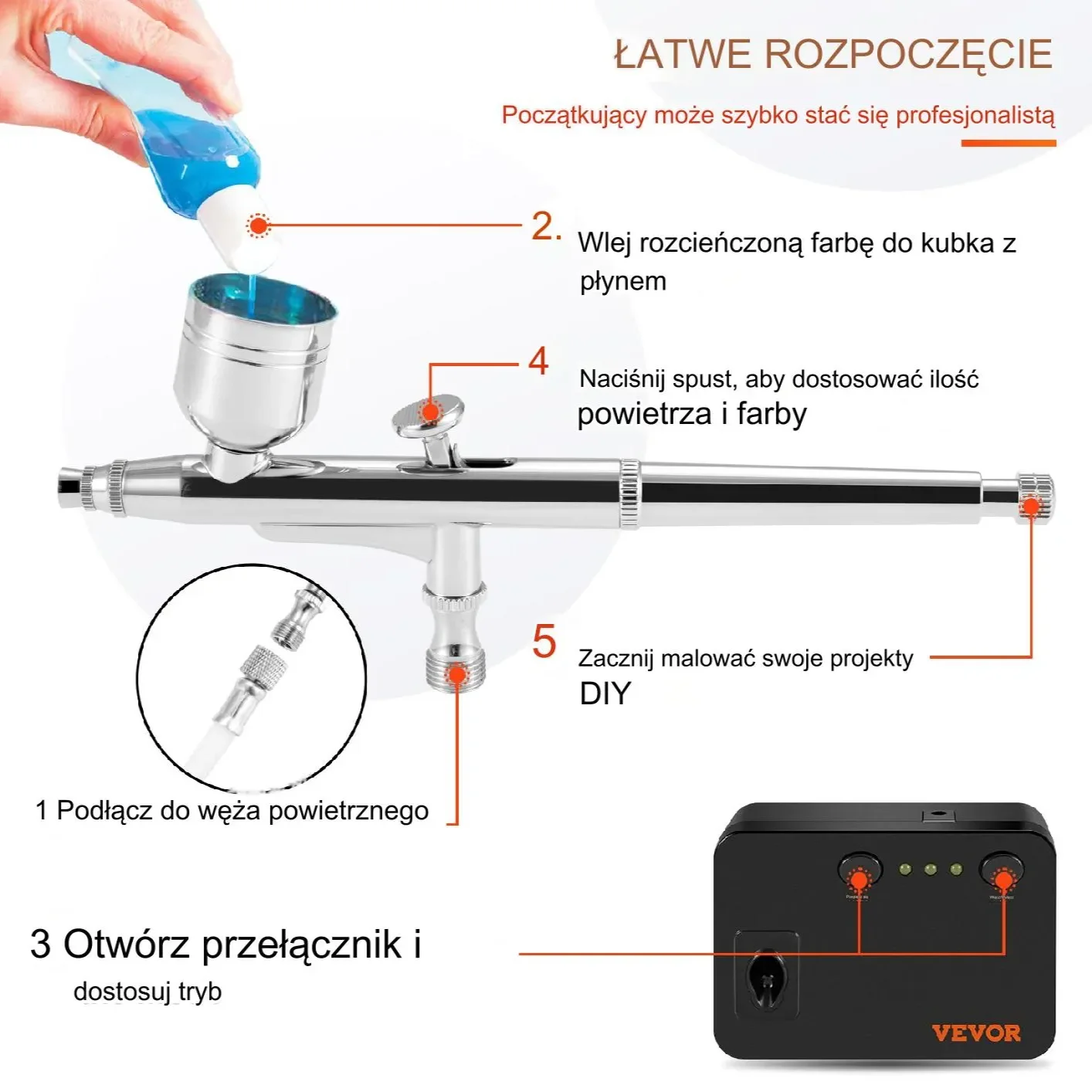 Przenieś swoje projekty na wyższy poziom z profesjonalnym zestawem aerografu, który łączy precyzję, wygodę i bezpieczeństwo. Doskonały dla pasjonatów i profesjonalistów – łatwy w użyciu, wszechstronny i wyposażony we wszystko, czego potrzebujesz do perfekcyjnego wykończenia. Nie zwlekaj – odkryj nowe możliwości artystyczne już dziś!
