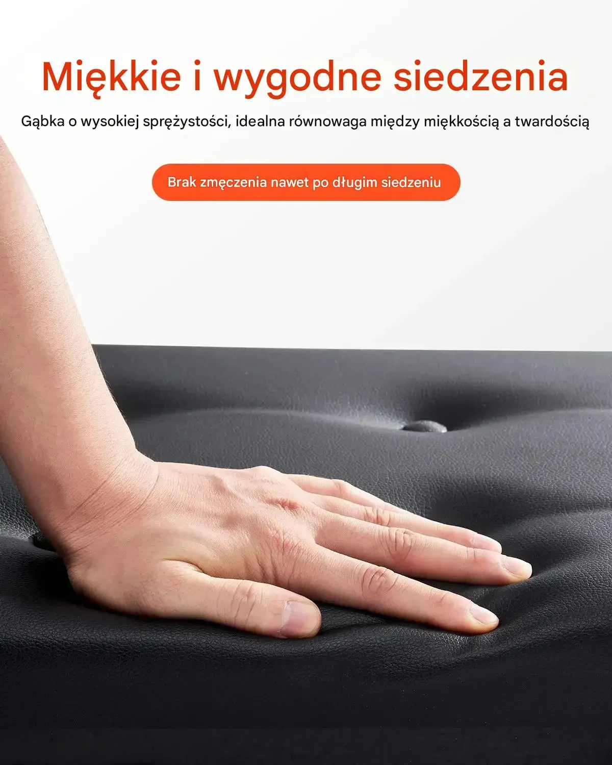 Siedzisko wykonane jest z gąbki o wysokiej sprężystości, co zapewnia idealną równowagę między miękkością a twardością. Dzięki temu użytkownik nie odczuwa zmęczenia nawet po długim siedzeniu.