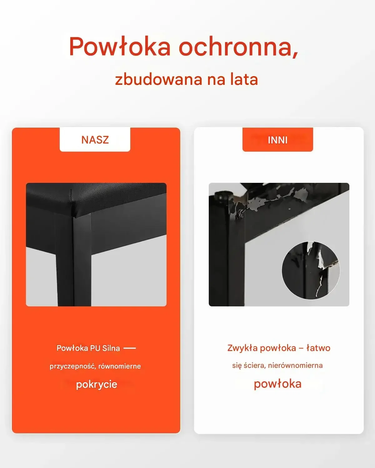 Powłoka ochronna ławki została zbudowana na lata. Zastosowana powłoka PU Silna zapewnia doskonałą przyczepność i równomierne pokrycie, w przeciwieństwie do zwykłych powłok, które łatwo się ścierają i są nierównomierne. Powłoka ta gwarantuje trwałość i estetyczny wygląd na długi czas.