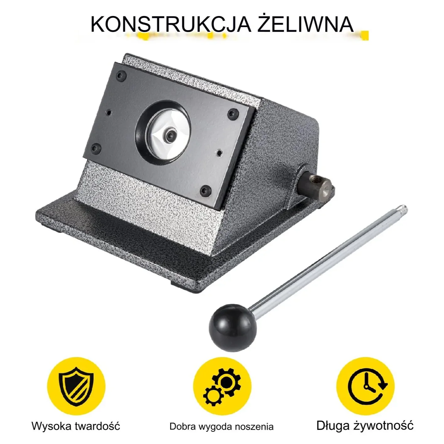 Ostrze ze stali węglowej okrągłego wykrojnika ma ostrą krawędź tnącą ułatwiającą dokładne cięcie. Dzięki grubości cięcia 1,5 mm, narzędzie idealnie pasuje do 44-milimetrowego urządzenia do tworzenia odznak.