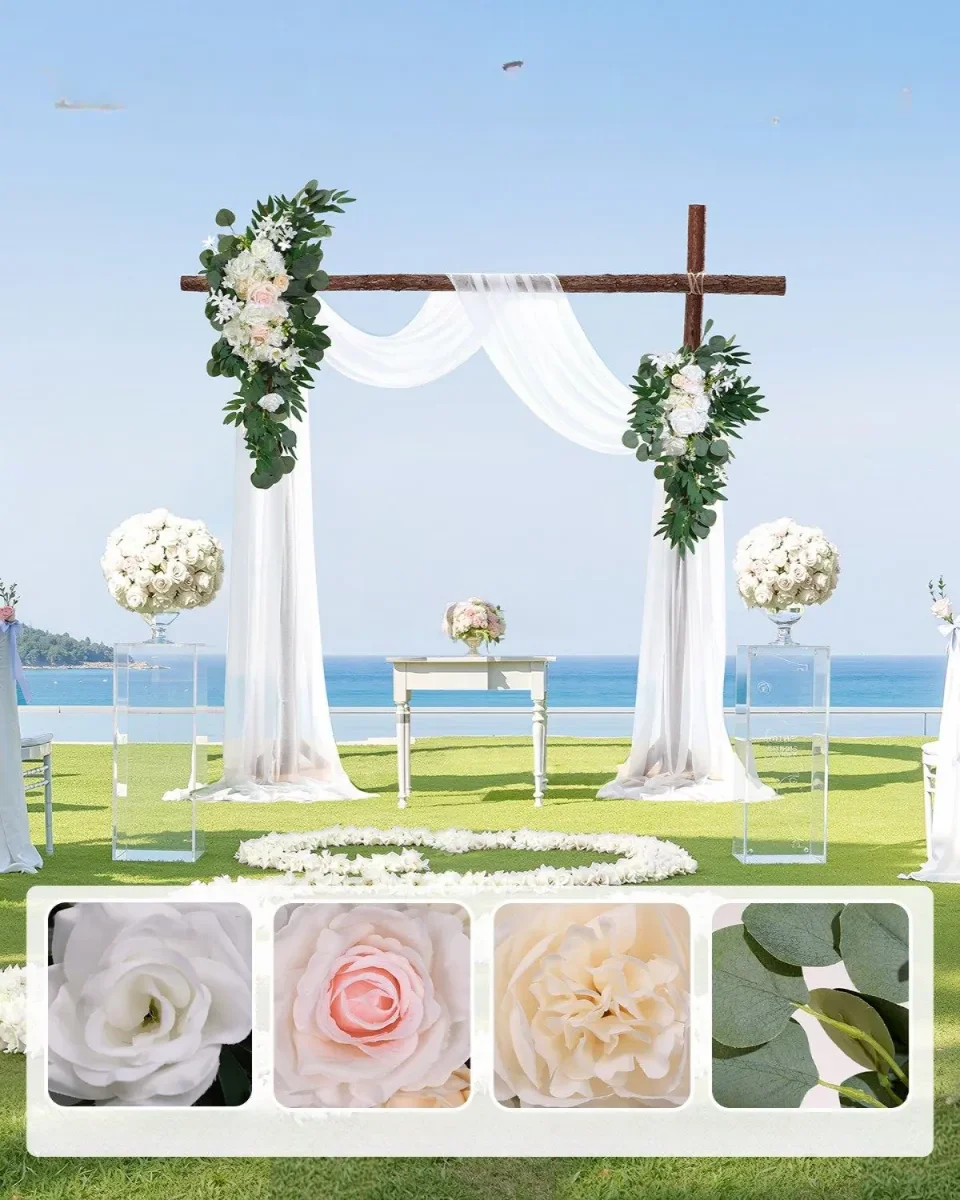 Stwórz niezapomnianą atmosferę na swojej uroczystości dzięki eleganckiemu zestawowi dekoracyjnemu z jedwabnymi kwiatami i przejrzystą zasłoną. Idealny wybór na śluby, zaręczyny, rocznice czy sesje zdjęciowe, który doda romantycznego uroku każdemu wydarzeniu!