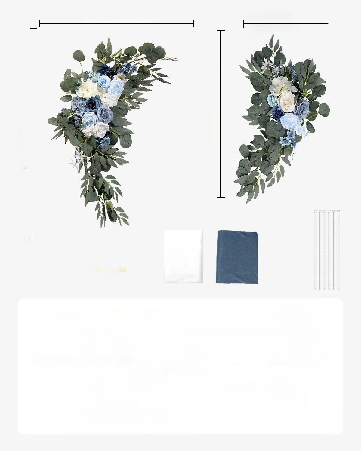 - ✅ Kompletny zestaw 4-elementowy: 2 bukiety kwiatowe + zasłona w kolorach niebieskim i białym