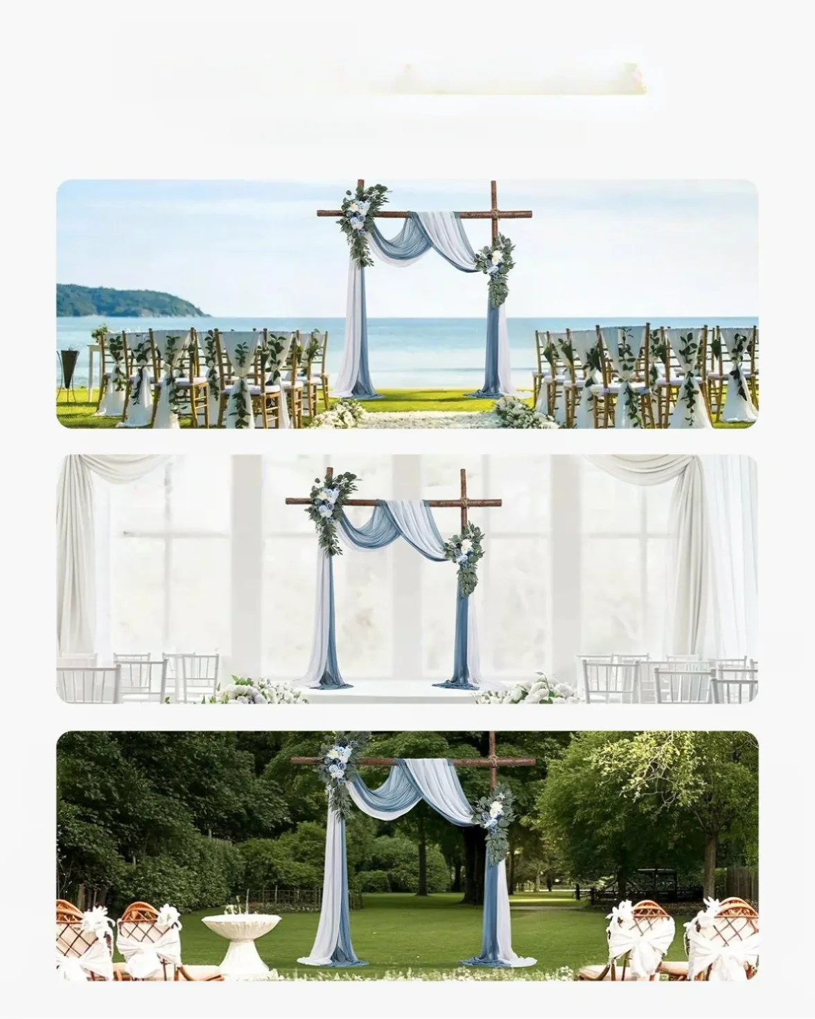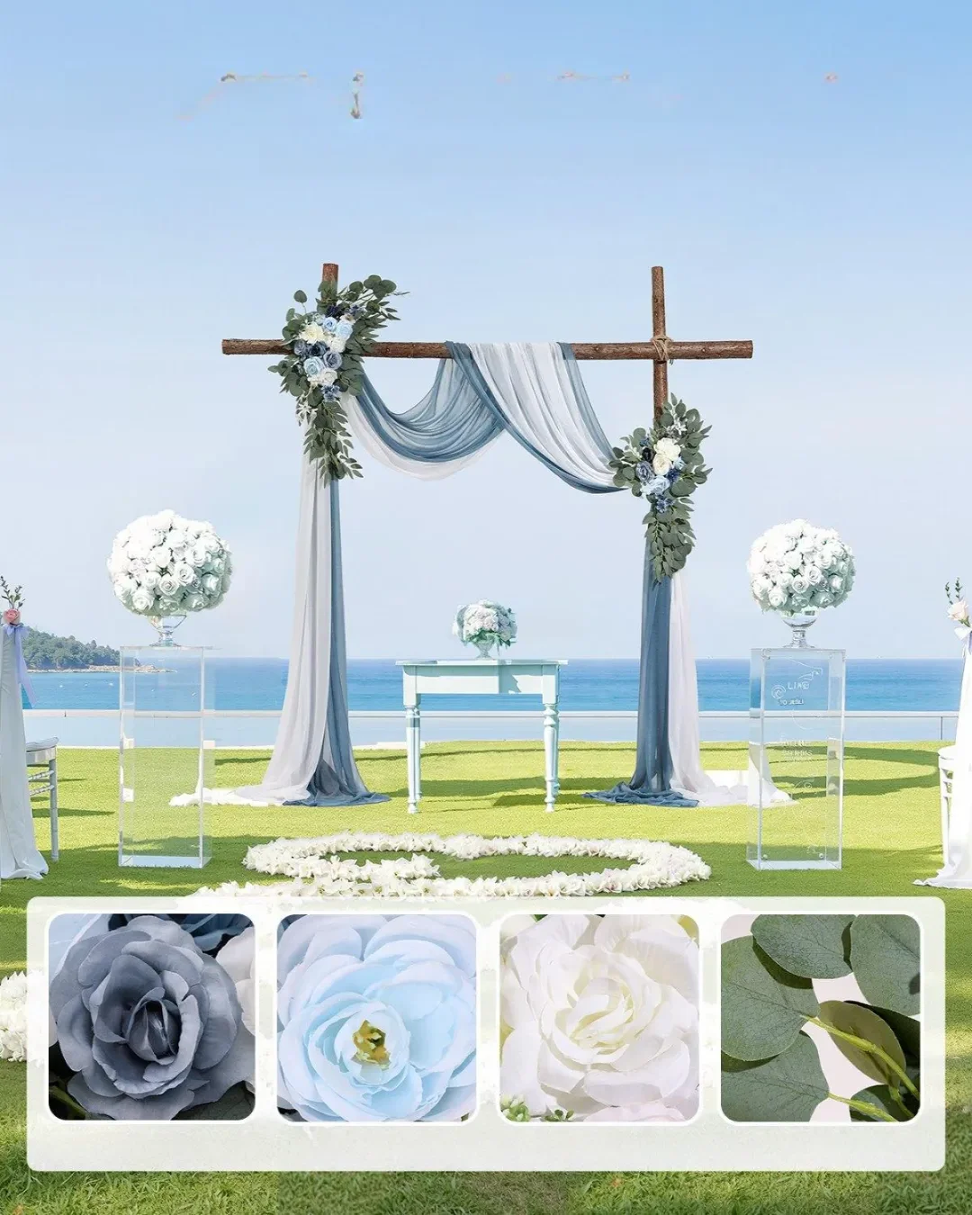 Start / Sklep / Moda / Odzież, Obuwie, Dodatki / Ślub i wesele / Dekoracje ślubne / Dekoracja stołu / Dekoracja Ślubna – Komplet Kwiatów i Tkanin na Łuk 4-Częściowy Niebieski