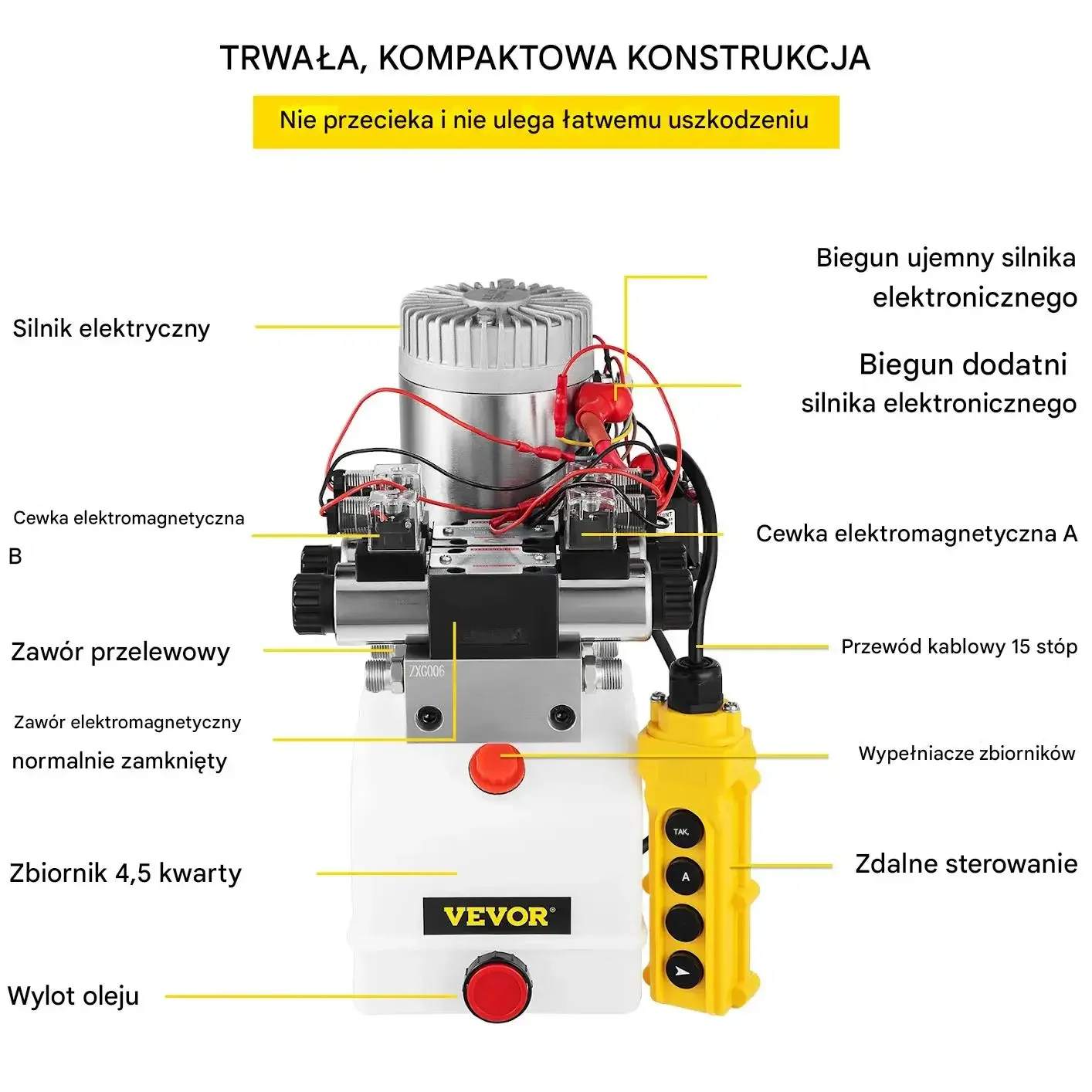 Pompa Hydrauliczna Zasilacz 12V 4,5L Dwustronnego Działania – Niezawodna Moc do Wymagających Zadań