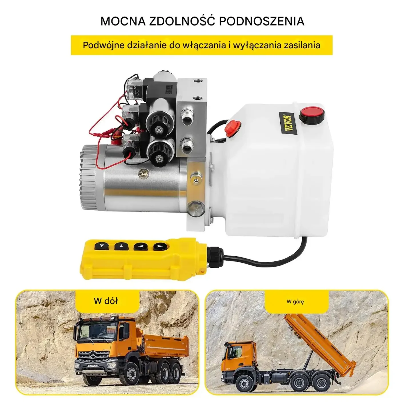Pompa hydrauliczna 12V dwustronnego działania 4,5L elektrozawór podnośnik