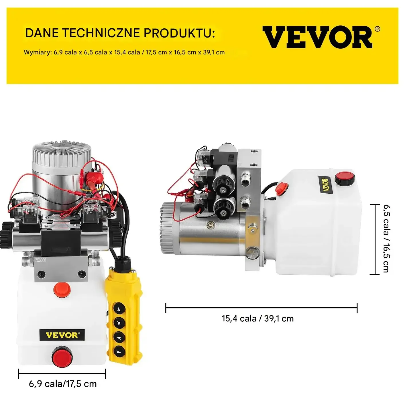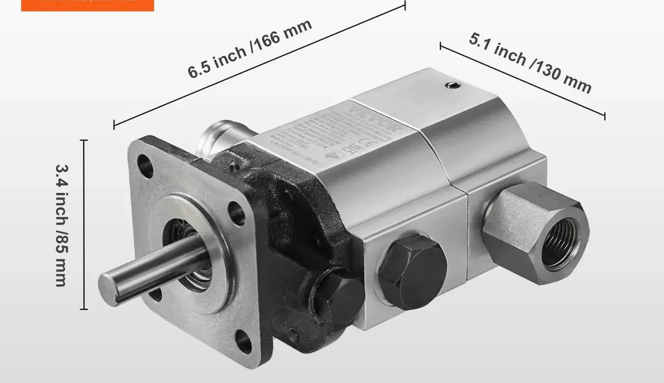 Pompa hydrauliczna VEVOR jest wyposażona w standardowe porty połączeniowe, które gwarantują doskonałe dopasowanie i minimalizują ryzyko wycieków oleju. Posiada port wlotowy SAE 40,6 cm i port wylotowy SAE 30,5 cm.