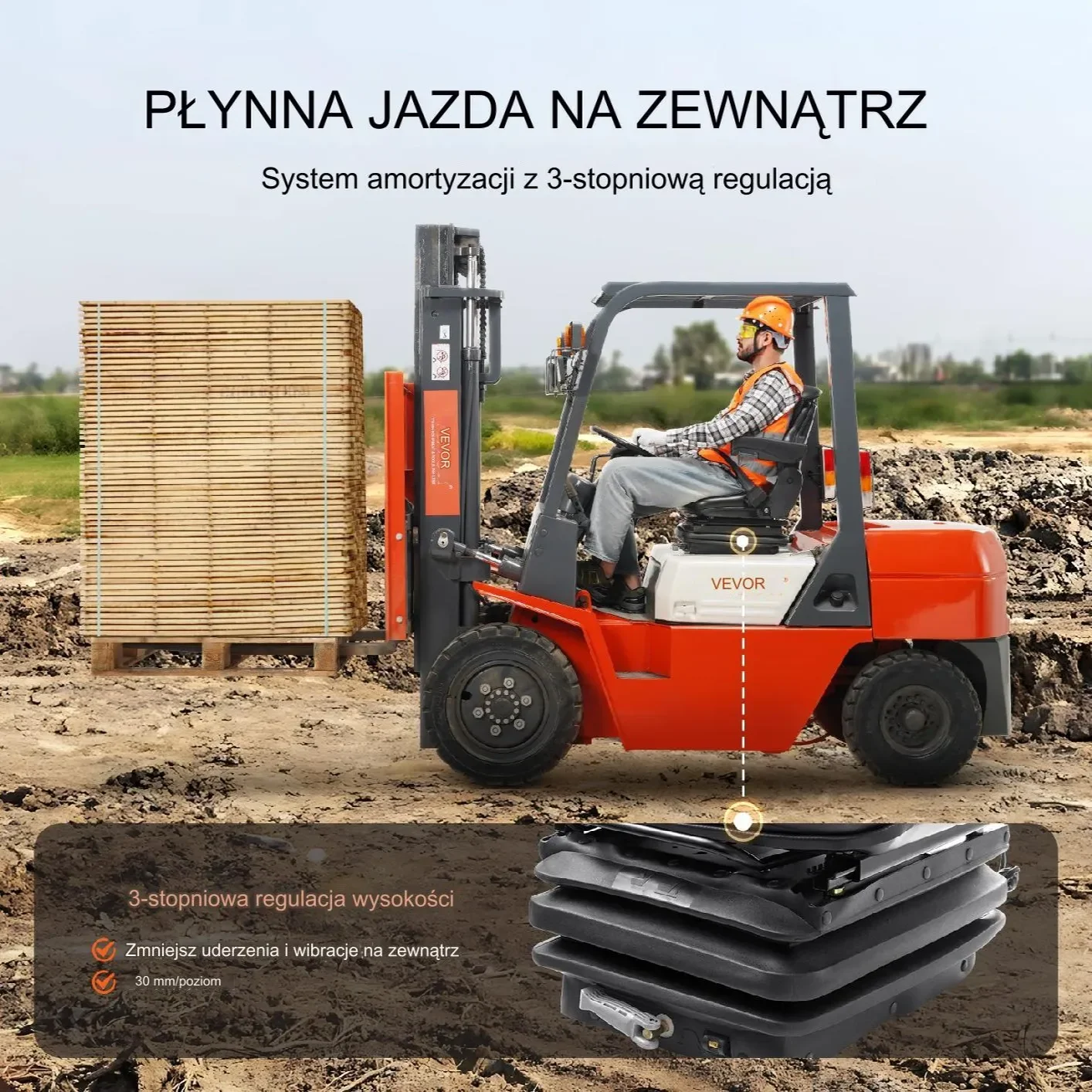 - ⭐ Wózki przemysłowe: Znacząco poprawia komfort pracy operatorów wózków widłowych i innych pojazdów przemysłowych.