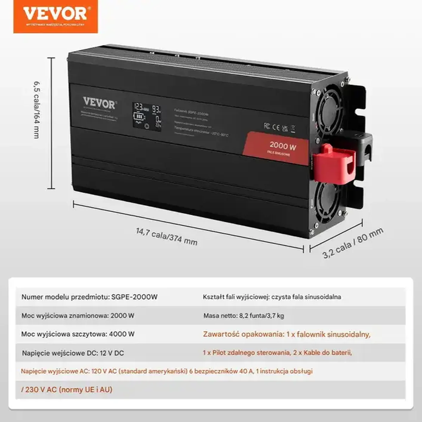 - Napięcie wyjściowe AC: 230V