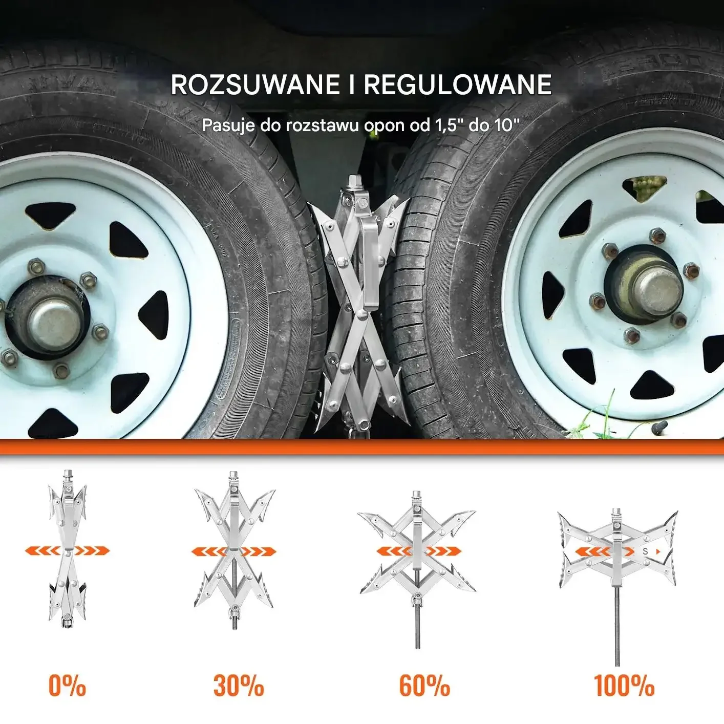- Zakres odległości między oponami: 3,8-25,4 cm